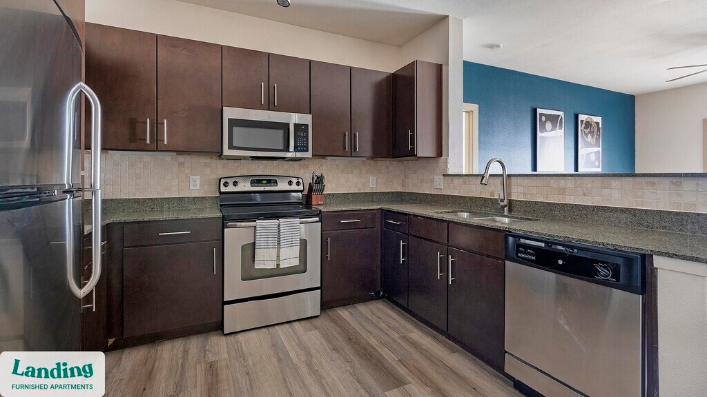 Landing offers flexible lease terms from weeks to months. Please always visit our website or contact us for the latest pricing & availability. Stay longer, save more: 6-Month Minimum base rent: starts at $1532/mo 12-Month Minimum base rent: starts at $1505/mo Landing offers flexible leases across a network of over 35,000 fully-furnished apartments throughout 375+ cities so you can rent on your terms, practically anywhere, and avoid the hassle of paying deposits or application fees. Visit to learn about all the benefits of a Landing membership, see our competitive up-to-date pricing, explore available apartments, take virtual tours, and make reservations online without jumping through traditional rental hoops. Landing's apartments at Elevate at Sundance are designed for comfortable, easy living, with the ability to stay as long as you like. Experience living with Landing Every apartment is outfitted with all the modern essentials including: custom-designed furnishings, a fully-equipped kitchen with deluxe stainless steel appliances, a gourmet coffee maker, premium linens, Smart TVs, and incredibly fast, reliable internet for working from home. When you live with Landing, you'll enjoy a hassle-free experience with the added benefit of 24/7 access to our dedicated member experience team. Some of the nitty-gritty: a background check and proof of income are required; we're completely smoke-free; bundled utility packages and pricing vary based on length of stay; pet-friendly options available; listed price reflects a 12-month minimum stay.