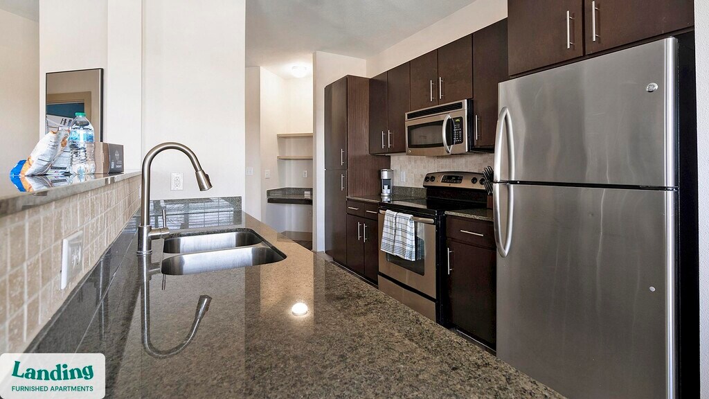 Landing offers flexible lease terms from weeks to months. Please always visit our website or contact us for the latest pricing & availability. Stay longer, save more: 6-Month Minimum base rent: starts at $1514/mo 12-Month Minimum base rent: starts at $1354/mo Landing offers flexible leases across a network of over 35,000 fully-furnished apartments throughout 375+ cities so you can rent on your terms, practically anywhere, and avoid the hassle of paying deposits or application fees. Visit to learn about all the benefits of a Landing membership, see our competitive up-to-date pricing, explore available apartments, take virtual tours, and make reservations online without jumping through traditional rental hoops. Landing's apartments at Elevate at Sundance are designed for comfortable, easy living, with the ability to stay as long as you like. Experience living with Landing Every apartment is outfitted with all the modern essentials including: custom-designed furnishings, a fully-equipped kitchen with deluxe stainless steel appliances, a gourmet coffee maker, premium linens, Smart TVs, and incredibly fast, reliable internet for working from home. When you live with Landing, you'll enjoy a hassle-free experience with the added benefit of 24/7 access to our dedicated member experience team. Some of the nitty-gritty: a background check and proof of income are required; we're completely smoke-free; bundled utility packages and pricing vary based on length of stay; pet-friendly options available; listed price reflects a 12-month minimum stay.