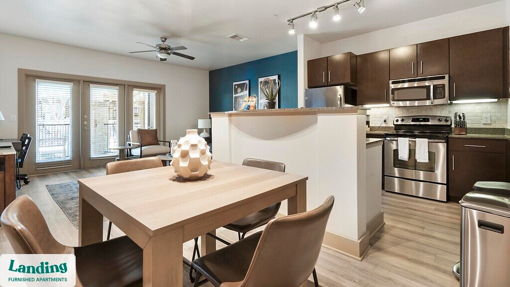 Landing offers flexible lease terms from weeks to months. Please always visit our website or contact us for the latest pricing & availability. Stay longer, save more: 6-Month Minimum base rent: starts at $1508/mo 12-Month Minimum base rent: starts at $1481/mo Landing offers flexible leases across a network of over 35,000 fully-furnished apartments throughout 375+ cities so you can rent on your terms, practically anywhere, and avoid the hassle of paying deposits or application fees. Visit to learn about all the benefits of a Landing membership, see our competitive up-to-date pricing, explore available apartments, take virtual tours, and make reservations online without jumping through traditional rental hoops. Landing's apartments at Elevate at Sundance are designed for comfortable, easy living, with the ability to stay as long as you like. Experience living with Landing Every apartment is outfitted with all the modern essentials including: custom-designed furnishings, a fully-equipped kitchen with deluxe stainless steel appliances, a gourmet coffee maker, premium linens, Smart TVs, and incredibly fast, reliable internet for working from home. When you live with Landing, you'll enjoy a hassle-free experience with the added benefit of 24/7 access to our dedicated member experience team. Some of the nitty-gritty: a background check and proof of income are required; we're completely smoke-free; bundled utility packages and pricing vary based on length of stay; pet-friendly options available; listed price reflects a 12-month minimum stay.