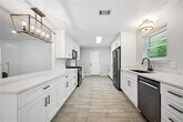 Step into this spacious property & unpack. Renovated in 2021 this beautiful 3 bedroom, 2 bath home features an open, airy floorplan. Custom kitchen cabinets, quartz countertops, SS kitchen appliances, gas stove, huge breakfast bar, washer & dryer, recessed lighting, wood vinyl plank, and tile flooring throughout. NO CARPET. Screened in back porch and large covered concrete patio for all your entertainment needs. Huge backyard with separate fenced in area excellent for securing pets. Plenty of storage throughout. Easy access to park and community pool.