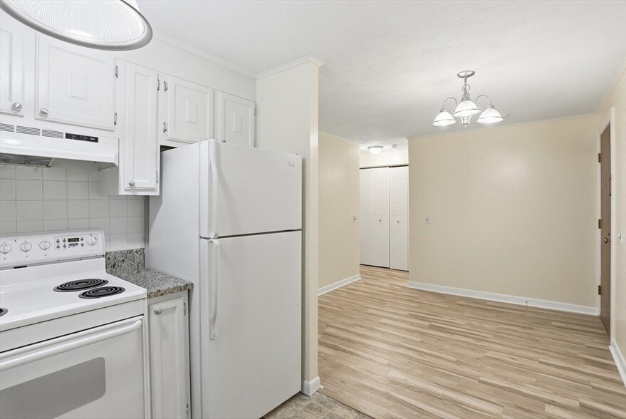 Lovely oversized 1-bedroom in desirable Pine Hill Complex! This TOP-FLOOR, FRESHLY PAINTED unit offers a spacious living room and a renovated kitchen with newer appliances and granite countertops. Full-size dining area. The king-sized bedroom features a generous closet with organizers. Beautifully updated full bath. NEW laminate flooring throughout. Additional storage is available in the walk-up attic. Enjoy quiet, beautifully landscaped grounds with wooded views, an in-ground pool, and a grill/picnic area. Coin-op laundry is located on the first floor of the building. Plenty of parking. Convenient commuter location close to shops, restaurants, grocery stores, trails, and conservation land. Heat and hot water included tenant pays only electricity and internet/cable.