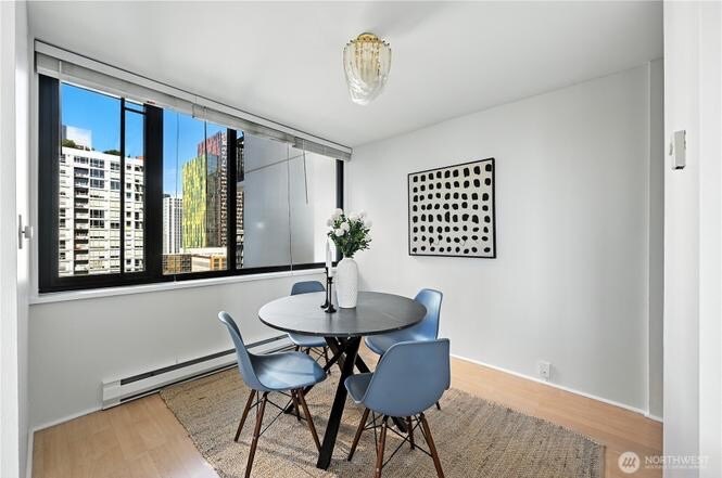 Property Id: 2339094 Huge Price Drop! Incredible views of the snd & Olympic Mtns frm this hi-flr immac NE corner 1BR/1BA spacious home! Almost 800sf, freshly paintd thruout, gorgeous, laminatd wood flooring, lovely blinds & circle flr plan for gracious living. Awesome, cov'd deck for ultimate entertaining! Great storage rm off entry. King size bdrm w/amazing views too! Bg amenities incl: gym, party room, outdoor patio w/firepit & BBQs tables & lounge chairs & a fabulous outdoor pool to soak up the sun! On-site mgrs & prof managed. Outstanding location - close to Amazon, Whole Foods, restaurants, coffee shops, retail shopping, Pike Place Mkt, Waterfront Pk, pub trans, bus & more! Perfect 1st or 2nd home in the city