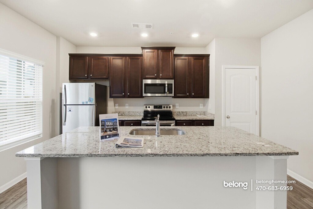 Packed with practical features like bright windows, durable flooring, and a pet-friendly setup, this well-kept abode is ready to support an active daily routine. Its open layout gives you plenty of room for both lively hangouts and quiet downtime, supported by 3 bedrooms and 3 baths that keep daily routines running smoothly. Your main living area enjoys generous natural light and wide-plank floors that make the space feel open and easy to navigate. A ceiling fan adds everyday comfort, while the nearby patio door connects you to the private balcony for a bit of fresh air whenever you need it. In the kitchen, coordinated appliances, rich cabinetry, and a long central island create a convenient spot for cooking, prepping, or sharing meals. A pantry with built-in shelving keeps staples organized, and the adjacent dining area has comfortable room for a full table setup. The attached garage provides additional storage and covered parking, giving you a flexible space for bikes, bins, or seasonal items. You’ll be close to plenty of local essentials in Kennesaw. Publix, ALDI, and Kroger are within a short drive for groceries, while Town Center at Cobb brings shopping, dining, and everyday services to one convenient area. Swift-Cantrell Park offers walking paths and open green space, and nearby restaurants along Cherokee Street and Jiles Road give you easy options for meals out. *Our homes come as-is with all essentials in working order. Want upgrades? Request it through the Belong app, and our trusted pros will take care of the rest!