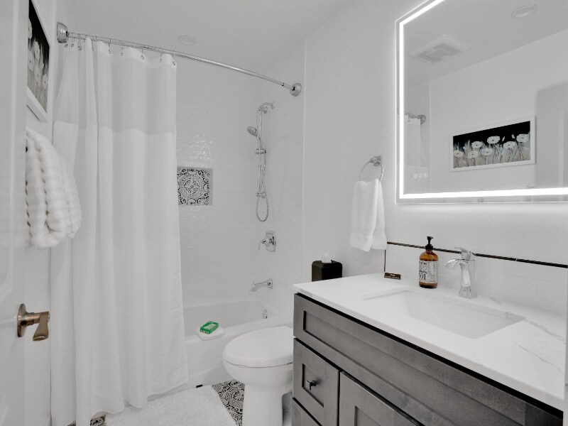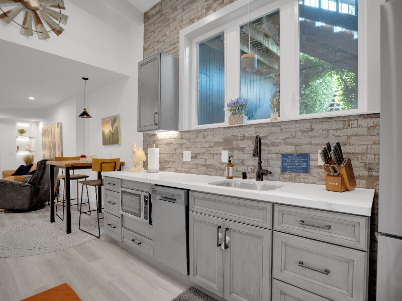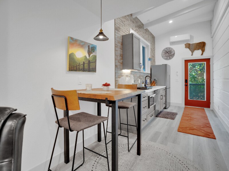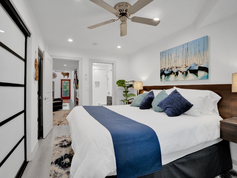 Property Id: 1578445 Custom built apartment with all newer high-end furnishings and custom art, king size bed, adjustable shower head over tub, private washer and dryer, induction cooktop, convection microwave oven, dishwasher and full-size fridge. Full set of dishes, cookware and small appliances, including toaster, air fryer, blender, air fryer and coffee maker. All with roomy pantry. Private setting with beautiful fireplace, electric adjustable recliner. Rent includes linen and towel service and all paper products, i.e., toilet paper, paper towel facial tissue. Bedroom has black-out coverings, large custom closets. Rooms have individual climate controls for individual comfort. Additional soundproofing for your privacy. Space is built energy efficient utilizing solar power. Enjoy the luxury of clean sheets and towels, soft lighting with a relaxing space to recharge, relax, cook or entertain!