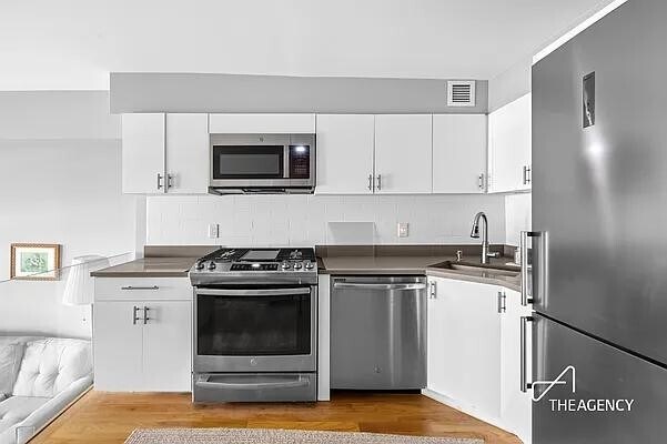 Discover the allure of contemporary urban living in this modern apartment, where form meets function in perfect balance. Featuring an open, versatile layout, this home offers an ideal space for relaxation and hosting. The sleek design is accentuated by high-end finishes, while expansive windows frame stunning city views and flood the interior with natural light. Modern appliances and thoughtful touches throughout give the apartment a luxurious feel, while the neutral palette provides the perfect backdrop for personalization.