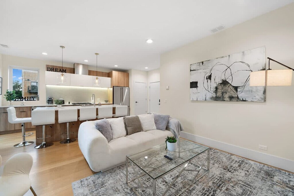 Feel at home in this comfy 3-bedroom, 2-bath apartment near the United Center. The open-concept living area is filled with natural light. The apartment features a fully equipped kitchen with modern appliances, perfect for preparing anything from a quick breakfast to a gourmet feast. A large flat-screen TV is available for your entertainment. The master bedroom features an en-suite bathroom. A pack-n-play can be provided, subject to location and availability. Stay close to the action in this well-appointed apartment just steps from Chicago’s United Center. This spot puts you right where you want to be, whether you're catching a game, seeing your favorite artist live, or just exploring the city. No smoking is allowed inside the apartment ($500 fine). No parties or events are allowed ($1,000 fine). Tampering with noise monitors or cameras will result in a $500 fine. Quiet hours are between 10:00 PM and 8:00 AM. The house is not pet-friendly. The maximum number of guests allowed in the home is as indicated in your booking details. Hosting additional overnight guests without prior approval is not permitted. To abide by all legal requirements and building security rules, you will be asked to provide a copy of your official government-issued photo ID, confirm your contact information, and provide a valid credit card with a name that matches your ID. Check-in time is 4:00 PM, and check-out time is 11:00 AM. If you require early check-in or late check-out, please inquire in advance. Registration Number: R2 [SI]