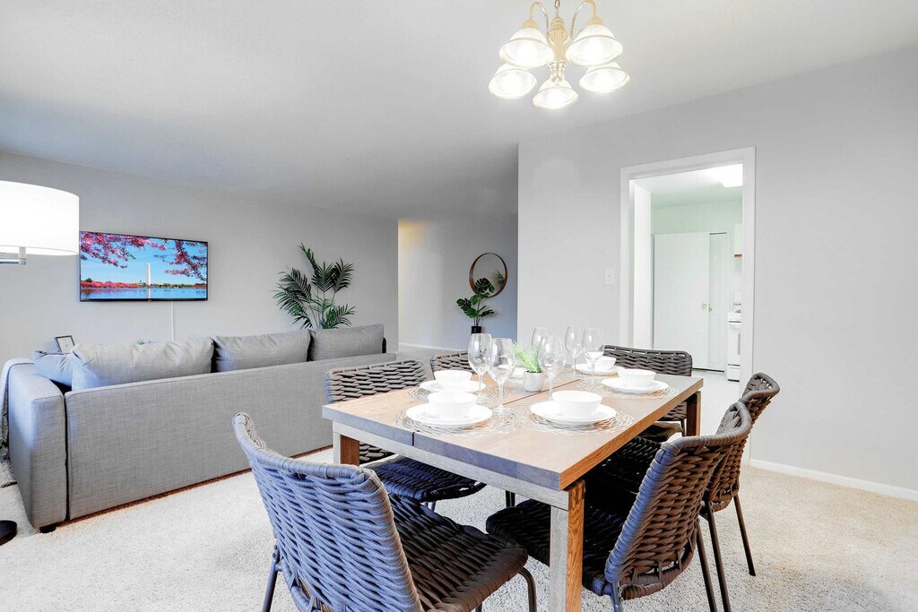 Feel at home in this modern Crystal City apartment, ideally located just minutes from the heart of Washington, D.C. This spacious retreat features two bedrooms and two full bathrooms. Designed for comfort and convenience, this apartment features stylish decor and a fully equipped kitchen. A TV in the living room provides entertainment, and the in-unit washer and dryer allow you to travel light and stay fresh. Parking is available; please display the parking permit on your dashboard or rearview mirror and do not park in handicapped spaces without a valid permit. Vehicles parked incorrectly may be towed at the guest’s expense. Enjoy staying in one of the best-connected neighborhoods, National Landing, which includes Crystal City, Pentagon City, and Potomac Yard. You're just steps away from shops and boutiques, top restaurants and cafés, and public transportation with quick access to Washington, D.C. Crystal City offers a lively area full of restaurants, cafés, shops, and local parks, including the Crystal City Underground. Pentagon City is just around the corner, where you'll find the Fashion Centre at Pentagon City. Potomac Yard is a quieter, residential area with green spaces and scenic walking and biking trails. You're also only 15 minutes from iconic landmarks such as the White House, the U.S. Capitol, and Georgetown University and close to Reagan National Airport. All guests must be registered prior to arrival; please send the full name and a valid government-issued ID for each guest before check-in, as IDs are required at the front desk for building access. Unregistered guests are not permitted, and failure to provide this information in advance may result in cancellation of the reservation, as per building regulations. This property is located in a residential building; please keep noise to a minimum at all times to respect neighbors. Smoking inside and unauthorized parties will result in a $300 fine. The building uses a centralized heating system, fully active from October 13 – May 1, and air conditioning, fully active from May 15 – October 1. Between these dates, the system adjusts based on outside temperatures, as decided by the building association. Check-in is at 4:00 PM and check-out is at 11:00 AM. Unauthorized late check-out will result in a charge equivalent to one night's stay. Please do not send packages to the property, as deliveries are not accepted or guaranteed. Washcloths are not provided. If the property is left in excessively poor condition, an additional cleaning fee will be applied. [SI]
