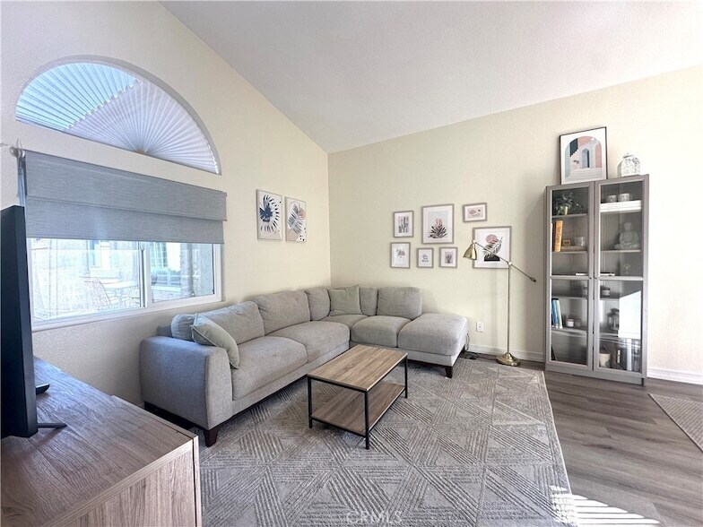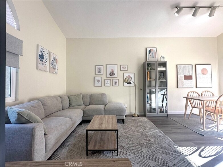 Welcome to this beautifully FULLY FURNISHED carriage style 1 bedroom / 1 bath home with 1-car attached garage below in the highly desirable Vista Del Flores community in Lake Forest. Open and Spacious floor plan with soaring vaulted ceilings, offering a large living room and dining room area, fireplace and upgraded sliding door access to a private balcony! Vinyl floors throughout! Kitchen is large, with lots of cabinets, stainless-steal appliances and a large window. The bedroom is vary spacious with 2 closets and attached bathroom! Water and trash are paid by the home owner! Vista Del Flores is a well-maintained community with a pool, spa, park, and is close to top-rated schools, shopping, and dining, hiking, biking and nature trails, as well as major freeways access and the Toll Road.