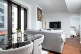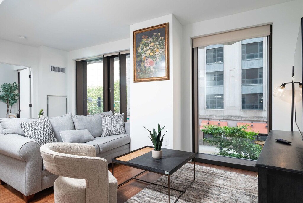 The advertised rate of $13,025/month is the lowest available price, based on a 30 day(s) stay with a move-in date of October 7, 2026. Rates vary depending on the duration of stay, season, and other parameters. For exact pricing and additional pricing components, please visit our website and enter your desired move-in and move-out dates. The rate is applicable when billed upfront; it can be higher if billed in multiple payments. Welcome to your oasis in the sky! Experience breathtaking views of the Boston skyline and Back Bay from this luxurious penthouse. Ideal for business travelers, medical professionals, and corporate clients, this apartment offers a comfortable memory foam mattress bed, a dedicated workspace, a 60” Smart TV, a full kitchen, and an in-unit washer and dryer. Enjoy the convenience of a full-size gym and a lounge area, all within a short distance to Kendall/MIT, Harvard Square, Downtown Boston, Back Bay, Beacon Hill, Seaport District, Logan International Airport, Longwood Medical Center, and MGH. The master bedroom features a deluxe king-size bed with indulgent custom linens, a fluffy duvet, plush pillows, two night tables with lamps, a clock radio, a dresser, and very spacious closets. The second bedroom offers a deluxe queen bed with similar luxurious amenities. The living room includes a sofa, a folding bed upon request, two chairs, an entertainment center with a flat panel LCD TV, a DVD/VCR player, a CD stereo system, a dining area with seating for four, and a work desk with a lamp. The gourmet kitchen is fully equipped with Shaker-style birch cabinets, tile floors, granite countertops, and full-size Energy Star GE stainless steel appliances, including a four-burner stove, oven, microwave, dishwasher, and side-by-side refrigerator with an ice maker. Coffee, tea, and sweeteners are provided. Parking is free for monthly stays. For shorter stays, parking is available at $45 per day with in and out privileges. Enjoy complimentary access to the fitness center and business center. Additional amenities include a club room with video conferencing capabilities, meeting rooms with a 58" LCD screen and surround sound, a mezzanine terrace with a garden, and a beautiful lobby with museum art. Located in the heart of Back Bay, this apartment offers easy access to Boston's most vibrant neighborhoods. Just 10-15 minutes from Kendall/MIT, Harvard Square, Downtown Boston, and the Seaport District, you'll find yourself in close proximity to cultural attractions, dining, and shopping. Public transportation options are readily available, making it convenient to explore the city. Quiet hours are from 9pm to 9am. Smoking and events are not allowed, and violations will incur a $500 fee. All guests over 18 must provide a photo ID. Please ensure all windows and doors are locked when leaving the apartment. Smoking violations will result in a $1000 fee. If you require a folding bed, please request it at least 24 hours prior to your arrival. The rooftop is not directly linked to the condo but is located on the last floor of the building. Includes a dedicated workspace with a desk and lamp, offering both wired and wireless Internet access. Perfect for remote work-friendly stays, ensuring you have everything you need for productivity. [SI]