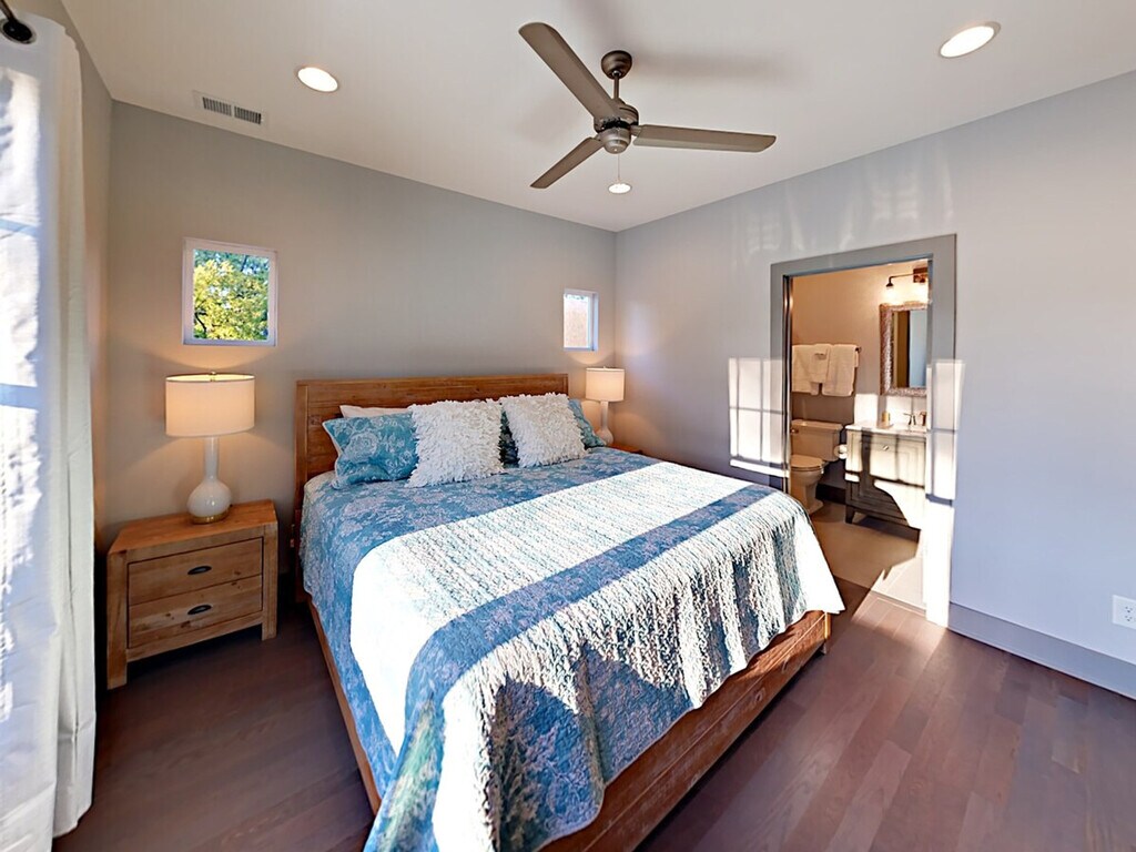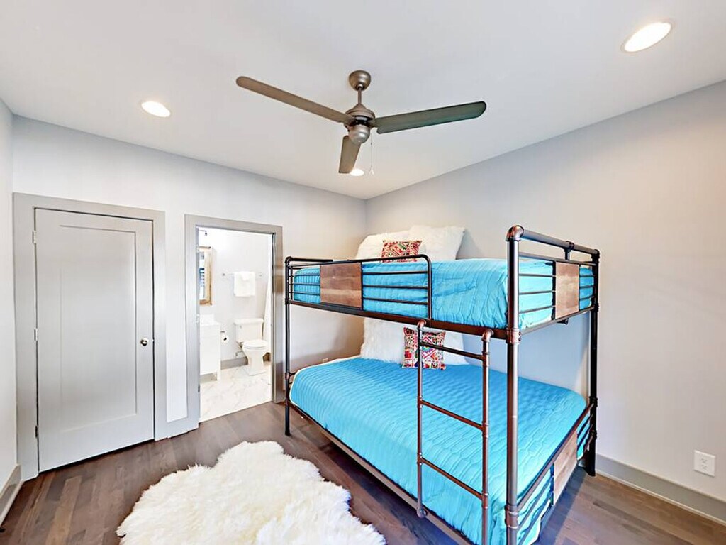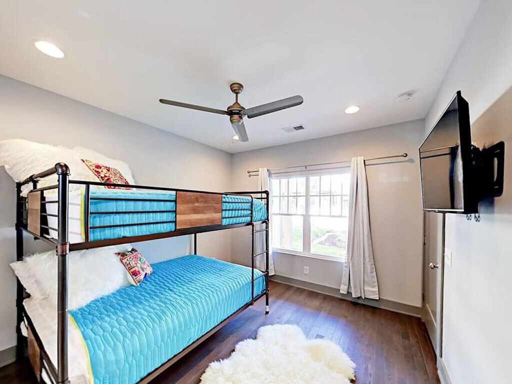 Experience urban luxury in this stylish 3-bedroom, 3.5-bathroom townhome near downtown, 12 South, and The Gulch. Each bedroom features a private attached bathroom, ensuring comfort and privacy. Enjoy modern comforts just minutes from top dining, shopping, and nightlife. Walking distance to 8 & Roast, an iconic Nashville coffee shop, and around the corner from the comedy club, Zanies, this location is perfect for a weekend getaway or extended stay, offering the best of Music City. This stunning townhome is the perfect place to stay for large groups or families. With its private balcony, en-suite bathrooms, and smart TVs in each bedroom, you'll feel like you're staying in a luxury hotel. The townhome also features a gourmet kitchen with stainless steel appliances, a six-top glass table, an island with seating for four, and a queen sleeper sofa in the living room. The master bedroom includes two queen beds, a double vanity, a walk-in shower with tile accents, and a separate water closet. The second bedroom has a king bed, and the third bedroom offers a queen-over-queen bunk bed. A tub/shower combination is available in the second and third bedrooms, with a half bathroom next to the living room. Parking is available with a 2-car garage and street parking. Conveniently located just 2 miles from downtown Nashville, this townhome is walkable to 12th South, a charming neighborhood with high-end boutiques and fun brunch spots. Just 5 minutes away is The Gulch, a bohemian neighborhood with Nashville's famous 'What Lifts You' wings mural. Maximum occupancy is 10 guests. No parties, smoking, or pets are allowed. No loud music and quiet hours are between 12am and 8am. Guests must sign a separate rental agreement. A local host, Tori, will be available to guests during their stay.