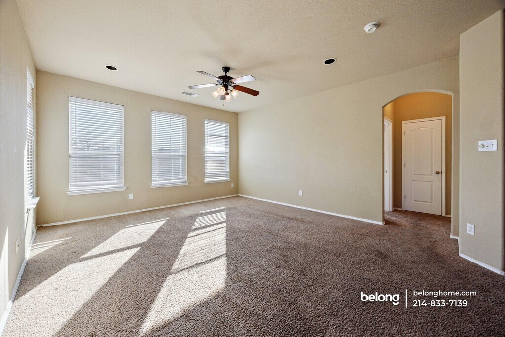 Welcome to a thoughtfully crafted 5-bedroom, 3.5-bath home that balances generous space with practical living. Its open floor plan centers around a large kitchen boasting an island and ample cabinets that look out to the main living area - perfect for everyday meals and catching up with family. Tile flooring flows through key gathering spaces, and recessed lighting with pendant fixtures adds functional brightness. Private quarters include five bedrooms, giving everyone room to unwind, while multiple bathrooms help keep busy mornings moving smoothly. Your primary suite connects to a bath with separate shower and tub areas, plus dual vanities that support daily routines. A dedicated laundry room makes household tasks convenient. Outside, a built-in sprinkler system helps maintain the lawn, and a security system with an alarm adds an extra layer of reassurance. The surrounding Fort Worth area places everyday conveniences close by. Grocery options such as H-E-B Alliance and Costco are nearby, along with shopping and dining at Alliance Town Center and Presidio Junction. Outdoor time is easy to enjoy at local favorites like Tehama Ridge Park and Prairie Vista Park, offering open green space and walking paths. With quick access to major roads, getting around the broader Alliance corridor feels straightforward and efficient. *Our homes come as-is with all essentials in working order. Want upgrades? Request it through the Belong app, and our trusted pros will take care of the rest!