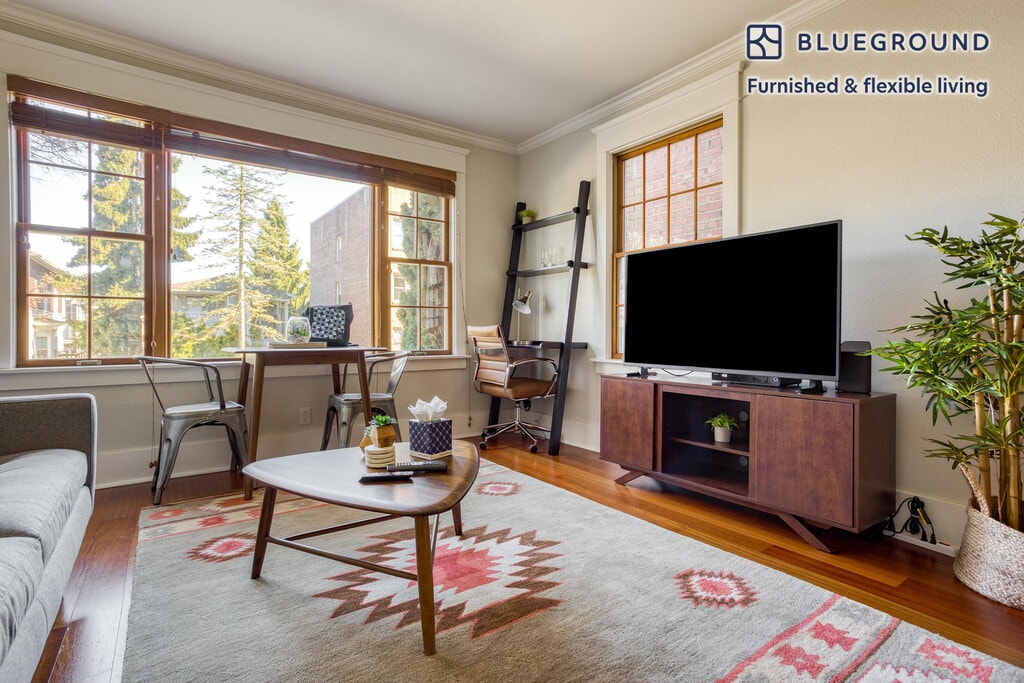 Ofrecemos precios personalizados por cualquier duración. Las tarifas pueden variar según las fechas exactas de mudanza. La tarifa para esta casa comienza en $2,050* / mes. Visita nuestro sitio web e ingresa tus fechas de estadía para ver los precios actualizados para tu reserva específica. *El precio cotizado es: (1) según la mudanza en el primer día en que el apartamento está disponible, (2) aplica solo si se factura por adelantado, puede ser más alto si se factura en múltiples pagos, (3) exclusivo de cualquier impuesto o servicio público. Asista y comience a vivir desde el primer día en Seattle con este encantador apartamento Blueground de un dormitorio. Le encantará regresar a su hogar en Capitol Hill, un hogar cuidadosamente amueblado, bellamente diseñado y completamente equipado. (ID #SEA683) Diseñado pensando en usted . Diseñado cuidadosamente con acabados personalizados, muebles modernos y una cocina totalmente equipada, disfrutará de esa sensación de “Estoy en casa” con este apartamento Blueground. Ya sea que esté descansando en su sofisticada sala de estar transmitiendo lo último y mejor del entretenimiento en el televisor inteligente o el altavoz inalámbrico premium, o disfrutando de un merecido descanso en el colchón de calidad superior con sábanas de lujo, se enamorará de todo lo que este apartamento de Capitol Hill tiene para ofrecer. Servicios para dormir con cama Queen de 160 cm Los servicios del edificio exclusivos de este dormitorio incluyen: - Aparcamiento gratuito en la calle - Se permiten mascotas Llegada y asistencia continua ¡Todo el apartamento es tuyo! Un miembro del equipo de Blueground te dará la bienvenida personalmente o te dará instrucciones de auto check-in. Durante su estancia, tendrá acceso a nuestro equipo de experiencia del cliente a través de la aplicación Blueground. Puedes programar limpiezas adicionales, enviar solicitudes de mantenimiento y ver las recomendaciones de nuestro vecindario con solo unos pocos toques. Compartiremos todos los detalles tras la confirmación de su estancia. Con una ubicación ideal Este apartamento amueblado está ubicado en Capitol Hill, un vecindario diverso conocido por ser el centro de la cultura y la comunidad LGBT de la ciudad. Esta área, repleta de bares, restaurantes, clubes, cafés alternativos y tiendas independientes, siempre tiene algo en marcha. Hay muchísimos espacios verdes entre los que elegir, por ejemplo, Volunteer Park ofrece senderos para caminar, un conservatorio de plantas, así como un Museo de Arte Asiático y vistas panorámicas de la ciudad. Para llegar a este vecindario hay tranvías, un tranvía y acceso al Link Light Rail. Otras cosas a tener en cuenta Este apartamento Blueground tiene opciones de arrendamiento flexibles, lo que le permite reservarlo por un mes, un año o más. Las mascotas son bienvenidas, aunque se aplican límites de peso y restricciones de raza y pueden incurrir en cargos. El estacionamiento se ofrece según la disponibilidad y está sujeto a un cargo. Tenga en cuenta que se trata de un edificio con acceso directo. Nos enorgullecemos de asegurarnos de que cada foto que se muestre se tome en nuestros propios apartamentos con nuestro mobiliario real. Dicho esto, actualizamos regularmente nuestra decoración y disposición de muebles, que pueden diferir de lo que se muestra en la imagen. También tenga en cuenta lo siguiente: - Este apartamento está ubicado en un edificio antiguo, puede haber algunas peculiaridades - Se requiere un permiso para estacionar en la calle cerca del edificio - Hay escaleras que conducen a la entrada de este apartamento, pero no ascensor