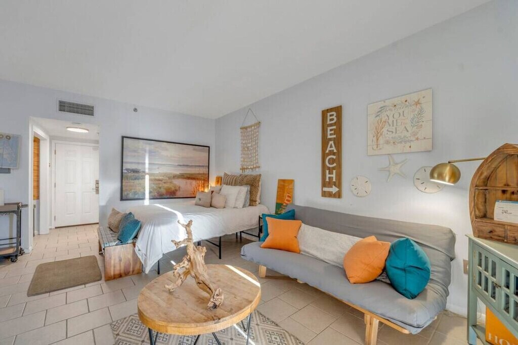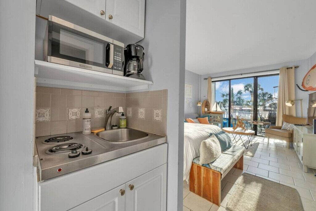 The advertised rate of $3,313/month is the lowest available price, based on a 30 day(s) stay with a move-in date of May 3, 2026. Rates vary depending on the duration of stay, season, and other parameters. For exact pricing and additional pricing components, please visit our website and enter your desired move-in and move-out dates. The rate is applicable when billed upfront; it can be higher if billed in multiple payments. Relax and feel at home in this stylish and cozy studio in the heart of Fort Walton Beach, perfect for a romantic getaway or a solo trip. You'll love the breathtaking views of the bay from the sun-drenched balcony. Studio A209 features a comfortable queen-size bed, a flat-screen TV, and a fully equipped kitchenette with a mini-fridge, stove top, sink, microwave, and coffee maker. Enjoy access to the Pirate's Bay community amenities, including a swimming pool, hot tub, tennis court, BBQ area complete with grills, tables, and chairs, a private dock and fishing pier, on-site laundry, and private beach access along the sound at the far west side of building B. Each apartment has a private balcony with outdoor seating, offering stunning views of the Santa Rosa Sound and Okaloosa Island. Free parking is available. Located in the heart of Fort Walton Beach, this apartment is in a popular vacation destination on the Emerald Coast of Florida. The neighborhood is primarily residential and boasts a mix of single-family homes, apartments, and condominiums. It is a relatively quiet and peaceful area, perfect for families and couples looking for a relaxing getaway. Several local attractions are within a short driving distance, including white sandy beaches, Okaloosa Island Boardwalk, Gulfarium Marine Adventure Park, and the Indian Temple Mound Museum. The nearest public beach access is 2.3 miles away at Okaloosa Island Beach Access One - Blue Dolphin Beachwalk. The neighborhood is also close to a variety of restaurants, bars, shops, and grocery stores. The pool and ice maker code is 1950. The coined laundry is located at the end of each floor, around the corner on the right-hand side when facing the building. The unit is not childproofed in any way, and it is your responsibility to ensure your children's safety during your stay. Guests agree to pay a $500 smoke damage cleaning fee if any sign or smell of smoke is encountered after check-out. Pets are not allowed at this property. Any vendors entering the property are prohibited. If the guest exceeds the occupancy noted in the reservation, all guests and/or visitors to the property will be immediately evicted without refund for unused days remaining. Guest also agrees to pay a charge of $20 per person per day for every visitor not identified by guest in the reservation. Guest agrees to pay any damage made by guests or their visitors to the property and property furnishings, fixtures, or furniture. Any disturbance triggering a visit by police will require immediate eviction of all guests from property, and no refund will be given for the unused portion of the guests stay. [SI]