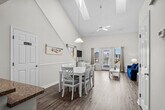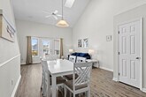 Relax and feel at home in this spacious 2-bedroom, 2.5-bathroom, 1350 sq. ft. condo located on the second floor. This condo features a primary suite with a king-size bed, a flat-screen TV with premium cable, a large closet, and an en-suite private bath with a tub/shower combo, as well as its own full-size washer/dryer. The fully stocked kitchen has bar stool seating and a dining table for 4 that opens to the living space with vaulted ceilings, tons of natural light, a Roku TV, a DVD player, and an attached patio with seating. Upstairs in the loft space, you will find 2 additional queen beds, another en-suite private bath with a tub/shower combo, a separate vanity, a walk-in closet, and a flat-screen TV with premium cable. Linen service, including linens for all beds, bath towels, hand towels, and wash cloths, is available for an additional fee of $50 for your stay. The cleaning fee includes a roll of paper towels in the kitchen, 2 rolls of toilet paper per bathroom, hand and dish soaps, and 2 laundry pods and 2 dish pods. You will want to bring pool/beach towels and any other linens you will need for the stay if you decide not to purchase linen service. Smoking and pets are not permitted as per HOA guidelines. [SI]