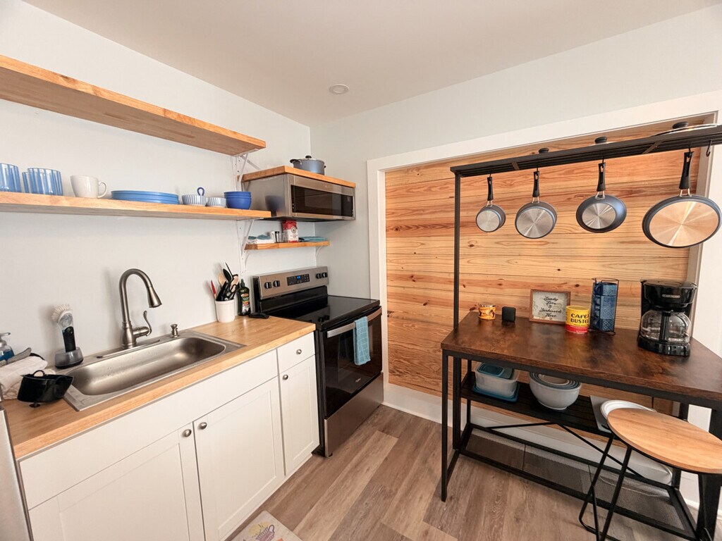 The advertised rate of $2,776/month is the lowest available price, based on a 30 day(s) stay with a move-in date of August 1, 2026. Rates vary depending on the duration of stay, season, and other parameters. For exact pricing and additional pricing components, please visit our website and enter your desired move-in and move-out dates. The rate is applicable when billed upfront; it can be higher if billed in multiple payments. Feel at home in this freshly renovated 1-bedroom, 1-bathroom cottage in Laguna Beach, Panama City Beach. Tucked in the heart of Laguna Beach's historic district, this bungalow is your ticket to that laid-back beach life you've been dreaming about. This bungalow features brand-new appliances, ocean-inspired decor, and a perfect coastal color palette. Enjoy stylish furniture, a relaxed atmosphere, and a private outdoor oasis with lush Florida landscaping, complete with a grill. The kitchen is equipped with a refrigerator, stove, oven, microwave, coffee maker, and all cooking basics, plus a kitchen island. The bedroom offers a queen bed, quality linens, extra pillows, room-darkening shades, and closet space. The full bathroom has good water pressure and includes toiletries such as shampoo, conditioner, body soap, and towels. A washer, air conditioning, and ceiling fans are also included. Two extra-large parking spaces are available, suitable for a boat, jet skis, trailer, or small RV. Located one block from the beach in Laguna Beach, Panama City Beach, you're within walking distance to white sand beaches and emerald waters. Carousel Grocery & Package Store and Thomas' Donuts are just a short walk away. Pier Park, with Dave & Buster's, shopping, and restaurants, is a 5-minute drive. Explore art galleries, cafes, and boutiques in Laguna Beach's historic district, and enjoy fresh seafood restaurants. Guests must be 25 to book. No visitors are allowed on the property. Smoking or vaping is prohibited in the unit. Includes a laptop workspace and fast Wi-Fi (500+ Mbps). [SI]