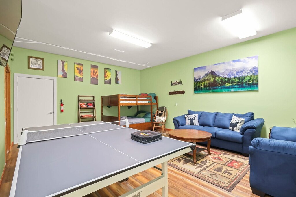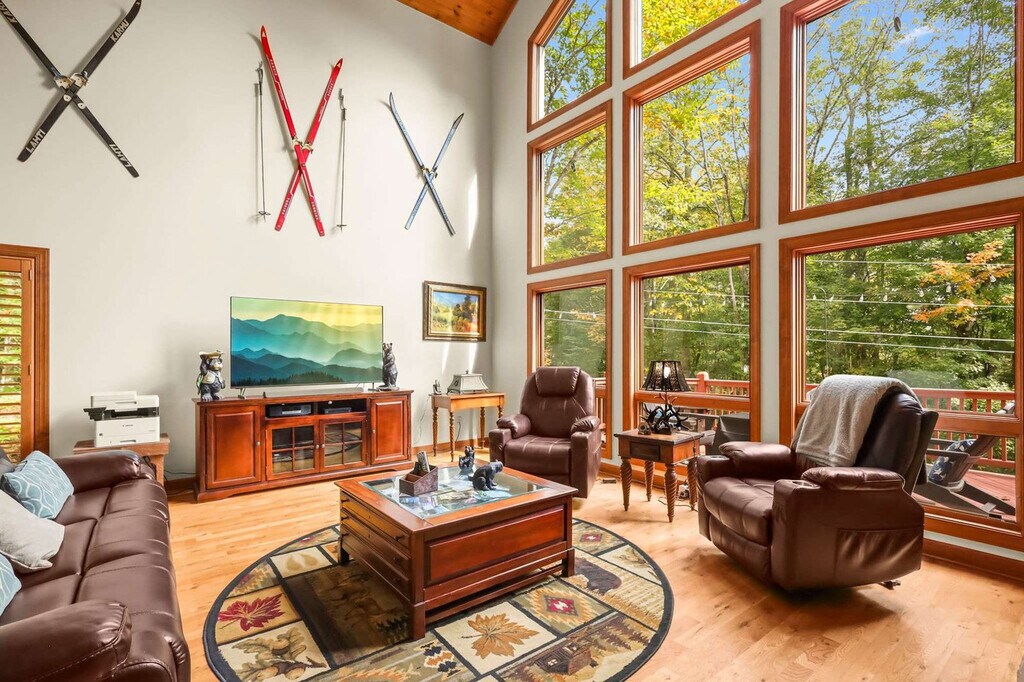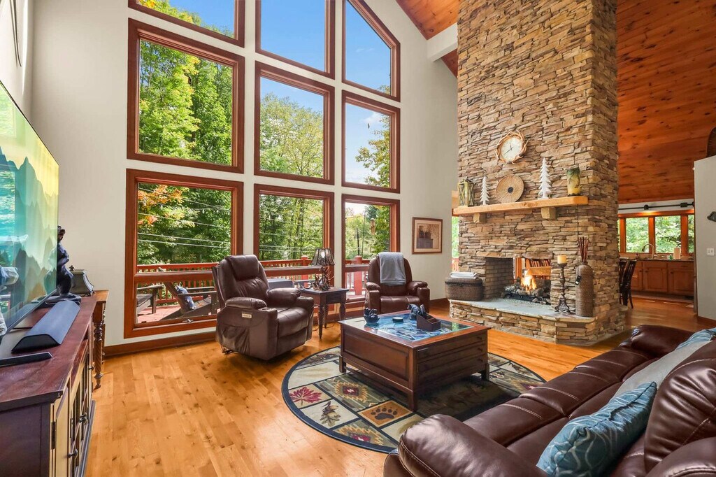 Two Bears Den is a spacious family retreat nestled on Beech Mountain, perfect for a relaxing mountain getaway. This charming home boasts an open and airy design, highlighted by stunning floor-to-ceiling windows in the living room, flooding the space with natural light and offering breathtaking views of the surrounding forest and mountain landscape. In the heart of the home, a double-sided fireplace creates a cozy ambiance, serving both the living room and the adjacent dining room, making it an ideal spot for family gatherings and enjoying meals together. With ample room for the entire family, Two Bears Den offers a warm and inviting atmosphere, blending modern comforts with the rustic charm of the mountains. It’s the perfect place to relax, unwind, and create lasting memories. The home features a fully equipped large kitchen with a gas range, conventional oven, refrigerator, freezer with ice-maker, dishwasher, coffee drip, garbage disposal, and microwave. The dining table seats six, making it perfect for family meals. The living room is furnished with a couch with two manual recliners, two recliners, a coffee table, and a side table. The game room includes a ping pong table, a couch, a love seat, a coffee table, and a side table. Outdoor areas offer a gas grill, chairs, a gas fire pit, and a hot tub on the front porch, all with stunning mountain views. Early check-in and late check-out are subject to availability with a $25 per hour fee. There is a fee of $150 for a maximum of two pets, which is not included in the reservation. Please reach out for further assistance. The cabin is situated in the small vacation town of Beech Mountain, NC. Its remote location and small-town charm offer a wonderful ambiance and a place to relax and refresh. The serene setting and mesmerizing natural surroundings provide plenty of attractions and places of interest for you to visit. Both Beech Mountain and Banner Elk offer skiing, snowboarding, snow tubing, zip-lining, mountain biking, off-road ATVs, rafting, fly fishing, hiking, golf, fine dining, and shopping all at your fingertips. It is highly recommended to bring a 4WD or AWD to access Beech Mountain, especially during winter months when snow chains are suggested. Smoking is not allowed. People other than those in the guest's party designated in the reservation may not stay overnight at the property. Any other person in the property is the sole responsibility of the guest. The house is privately owned, and the owners are not responsible for any accidents, injuries, or illnesses that occur while on the premises or its facilities. The homeowners are not responsible for the loss of personal belongings or valuables of the guest. By accepting this reservation, it is agreed that all guests are expressly assuming the risk of any harm arising from their use of the premises or others whom they invite to use the premises. Keep the property and all furnishings in good order and only use appliances for their intended uses. There is no daily housekeeping service, and while linens are included, daily maid service is not included in the rental rate.