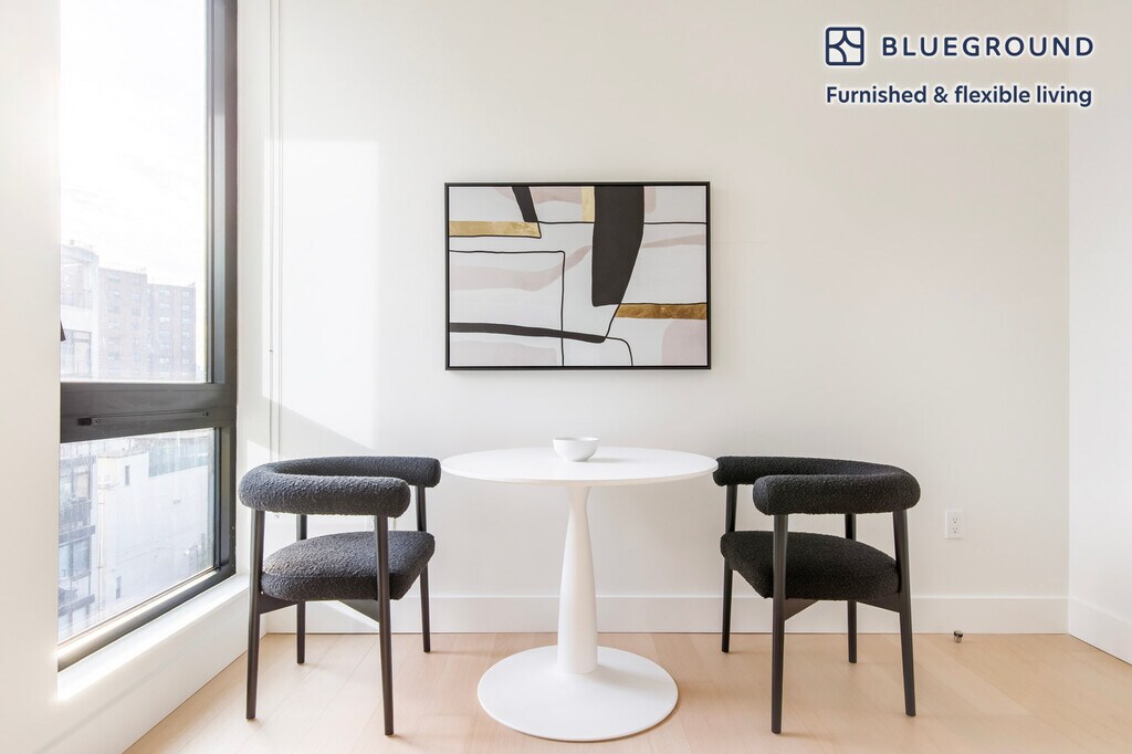 Discover the best of New York, with this one bedroom apartment in Downtown Brooklyn. It’ll be easy to simply show up and start living in this furnished apartment with its fully equipped kitchen, living room, and our dedicated, on-the-ground support. (ID #NYC2186) The advertised rate of $4,230/month is the lowest available price, based on a 1 month(s) and 3 day(s) stay with a move-in date of January 21, 2026. If you’re looking for a 1-year stay, the rate is $5,690/month. Rates vary depending on the duration of stay, season, and other parameters. For exact pricing and additional pricing components, please visit our website and enter your desired move-in and move-out dates. The rate is applicable when billed upfront; it can be higher if billed in multiple payments. Brokers are welcome to reach out. Were you looking for an unfurnished lease? Try Blueground instead and upgrade from unfurnished to furnished living: - Furnished at rates comparable to unfurnished - No setup or furniture costs - save thousands - Move-in ready - save time, just bring your suitcase Designed with you in mind Gorgeous furniture, fully equipped kitchen, smart TV, and a premium wireless speaker are just a few of the amenities you’ll find inside this one bedroom apartment. Ideally located in New York, you’ll find a lot to love outside as well. When you’re ready to relax, you’ll be happy to discover every Blueground bedroom comes with superior quality mattresses, luxury linens, and cozy towels. We handle everything so you can simply show up and start living. This apartment also offers in-apartment laundry. Sleeping arrangements Queen Bed, 63in/160cm Amenities Building amenities unique to this one bedroom apartment include an on-site: - Doorman - Dryer - Elevator - Washing machine - Lounge - Library - Media room - Pets allowed - Playroom - Rooftop BBQ - Sauna Arrival and ongoing support The entire apartment is yours to enjoy! Throughout your stay, you’ll have access to our Client Experience team through the Blueground App. You can schedule additional cleanings, submit maintenance requests, and view our neighborhood recommendations with just a few taps. We’ll share all details upon confirmation of your stay. Ideally Located This furnished apartment is located in Downtown Brooklyn, one of the borough's most sought-after neighborhoods. The bustling area is characterized by both office towers and residential buildings, so there's a wide variety of restaurants serving cuisine from all over the world, night and day. Downtown Brooklyn is also the site of the Brooklyn Academy of Music, a cutting edge arts complex, and it's an easy walk to the foot of the famous Brooklyn Bridge. The neighborhood is served by several subway lines and bus routes, making it easy to get to Manhattan and the city's other boroughs. Other things to note Building amenities may have an extra cost. This Blueground apartment has flexible lease options, allowing you to book it for one month, a year, or more. Pets are welcome, though weight limits and breed restrictions apply and may incur fees. Brokes CYOF. We take great pride in ensuring every photo displayed is shot in our own units with our actual furnishings. That said, we regularly refresh our decor and furniture arrangement, which may differ from what’s pictured. Also note - Ongoing construction in close proximity; construction sounds may occasionally be heard [SI]