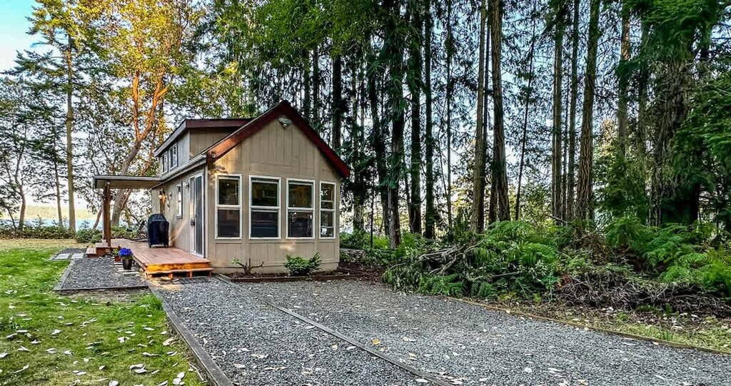 Experience Northwest living at its best in Greta's Casita, a tiny home that sleeps 3. Feel at home surrounded by tall evergreens and wondrous Pacific Madrone trees framing the property. Please note that this property sits near a bluff with a spectacular view, but there is no beach access. This single wide manufactured home features one bedroom, a full kitchen (except for a dishwasher), and a dining area in the living room. The kitchen, equipped with a microwave, toaster oven, and stove, is ready for preparing meals. Enjoy a Roku TV and a bathroom with a tub-over-shower. Meals can be enjoyed inside in the dining area or outside on the deck overlooking the beautiful grounds. A propane grill is located near the front deck. Parking is available for a maximum of two cars. Located off the beaten path down a dirt road with one other house on the property, this tranquil property offers an experience of the Olympic Peninsula. Downtown Sequim's coffee houses, local restaurants, and shopping are 15 minutes away. Nearby attractions include Miller Peninsula State Park, just over a mile down the road. Further adventures into the Olympic National Park are less than a day's trip away, with Hurricane Ridge 45 minutes away, Lake Crescent and Sol Duc Hot Springs within 1 hour and 1.45 hours respectively, and the Hoh Rain Forest and Pacific coastline beaches within a 2.5 to 3-hour drive. Dungeness National Wildlife Refuge is around 35 minutes away. Pets are not allowed. Personal mail delivery to the property is not permitted. It is essential that you respect the privacy of the neighbors with no trespassing or loud noises. Tampering with outside cameras is cause for immediate cancellation of the reservation with no refund. Smoking of any tobacco products, including marijuana, e-cigarettes, and vaping products, is not allowed in the house or on the property, and renters who do not comply with this policy may be assessed with a $300 smoke removal fee. If pet droppings are found on the property there will be an extra charge of $35 per pile. If there is any property damage, or excessive cleaning required, you agree to pay charges with your credit card at full cost. Missing keys will result in a $25 key replacement, charged to the renter’s credit card. Check out is at 11 AM, overstaying will be penalized with $50 USD per hour. [SI]