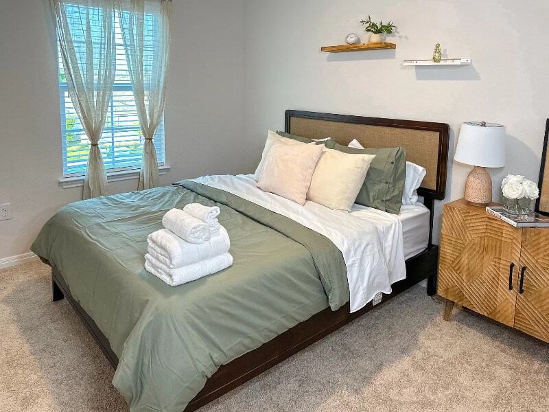 Property Id: 1559369 Fully Furnished, Move-In Ready! Inside, you'll find a luxurious 2-story home with new furniture designed for comfort and relaxation. Perfect for up to 10 guests, it features 4 bedrooms. The Master bedroom, located on the first floor, has a king-size bed and private en-suite bathroom. The other 3 bedrooms are on the second floor; two have queen-size beds and private closets, and the third has 2 twin beds. Enjoy an upstairs loft with a 65-Inch TV for movies or a kids' play area. The downstairs living room is beautifully decorated and also has a 65-Inch TV. The spacious kitchen is equipped with all basic cooking essentials. The dining room seats up to 6 people. A washer and dryer are on the first floor. The backyard offers covered seating. There is ample parking in the driveway and garage. Flexible Terms: 1 month to 1 year.