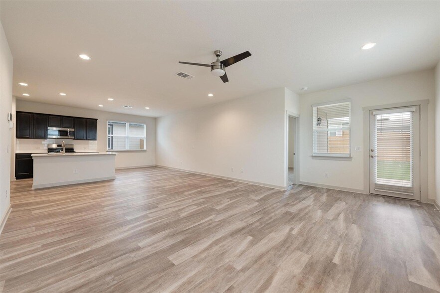 Look & Lease Special - $500 Off First Month - Deposit Free Option - Move in by November 14th. Modern 1 story home in Wildleaf! 4 bedroom, 2 bath, 2 car garage, open floorplan, island kitchen, 1 block to community amenity. Sprinkler systems, Vinyl wood plank in living area, carpet in bedrooms, Acclaimed Liberty Hill ISD schools, easy access to 183 and hwy 29.
