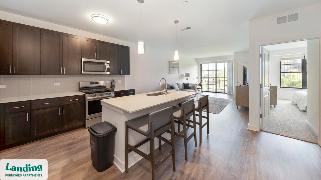 Landing is a top-rated, fully furnished apartment network with thousands of homes across 250+ U.S. cities. With premium amenities, a mobile app to manage your stay, and 24/7 support. Our apartments have everything you need for monthly and longer stays. 6-Month+ Stay base rent: starts at $3881/mo 12-Month+ Stay base rent: starts at $3648/mo Landing's apartments at Element at Veridian are designed for comfortable, easy living, with the ability to stay as long as you like. All Landing apartments include: - Fast Wi-Fi - Stylish furnishings - Fully-stocked bathroom - Smart TVs - Comfortable bed - Professionally cleaned - Guest support Stay longer for cheaper! The longer you stay, the bigger your discount. Price advertised is for a 12-month stay, including all utilities and fees, and may vary based on availability. We manage multiple units at this property. While all feature a similar style and furnishings, the layout and specific design elements may vary slightly from the photos provided. Some of the nitty-gritty: a background check and proof of income are required; we're completely smoke-free; pet-friendly options are available; parking is subject to availability.
