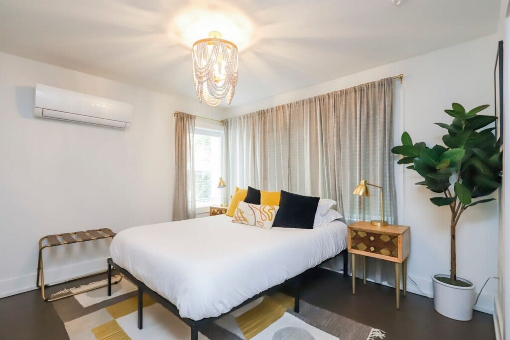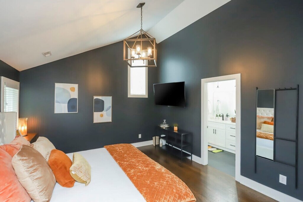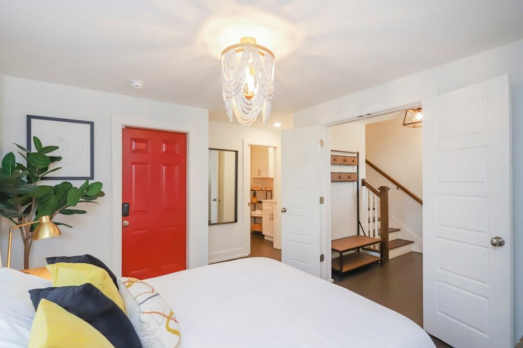 Experience Nashville in style at this elegantly decorated retreat, perfectly situated just 0.5 miles from Belmont University. Stroll to local eateries, coffee shops, and boutiques, with a brand-new Publix conveniently located next door. Unwind in four beautifully appointed bedrooms with en-suite bathrooms and gather in the vibrant open-concept living room and kitchen, ideal for large groups. This apartment features four bright and spacious bedrooms, including two king-size beds, two queen-size beds, and two queen sleeper sofas. There are four full bathrooms, with one offering a walk-in shower and three featuring a bathtub and shower combo. The modern kitchen is equipped with new stainless steel appliances, and the open floor plan includes a living room and dining area. Enjoy the private balcony with a cozy dining area, two large flat-screen TVs with standard cable and satellite, free Wi-Fi, and a dedicated workspace. Additional amenities include a carport with two free parking spaces and an on-site washing machine and dryer. Guests staying for three weeks or longer will incur an additional cleaning fee, which is not included in the booking price but will be charged as an add-on. There is also an additional $400 fee for guests wanting to book this property for filming and/or photography, with a location agreement required prior to the shoot date. Conveniently located near downtown Nashville, this home is just a short Uber or Lyft ride away from some of the best restaurants, bars, and attractions the city has to offer. You’re no more than 2 miles away from Broadway and only 15 minutes from BNA Airport. The neighborhood is peaceful yet close to all the action, with popular bars, restaurants, and coffee shops in Melrose just a short walk away. Explore 8th Avenue's shops, boutiques, and cafes, or venture into town to discover its vibrant live music scene. This house is located in a semi-residential area and is not suitable for hosting rowdy groups. Disturbing guests will be asked to leave. The property is absolutely not to be used as a place of business or pop-up business of any kind. Check-in is at 4 pm and check-out is at 10 am. Early check-ins or late check-outs must be pre-arranged, and any non pre-arranged late check-outs will result in a penalty. For security, there are exterior cameras to verify who is entering the home. The maximum occupancy is 12 people, and this cannot be exceeded. Upon booking, you will receive a code for entry, which will activate on your check-in day and deactivate on your check-out day. The apartment offers free Wi-Fi and a dedicated workspace, making it ideal for remote work. A laptop computer is not included. Registration Number: [SI]