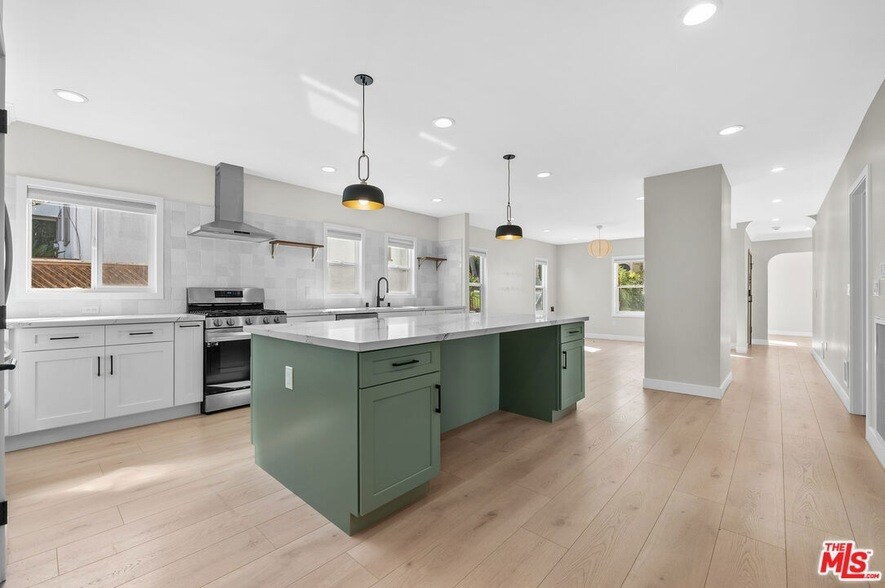 Redesigned Spanish-style home with 3 bed / 3 full baths on a quiet, tree-lined street in Rancho Park between West LA & Cheviot Hills. A welcoming front courtyard patio opens to the entryway, leading into a modernized open-concept interior with French oak floors, LED recessed lighting, and dual-pane windows. Upon entering, a light-filled family room, anchored by a sleek linear fireplace and framed by a large picture window, is complemented by sightlines to an entertainer's kitchen with an oversized island, quartz countertops, stainless steel appliances, ample storage, and a dedicated laundry area with side-by-side washer & dryer. The home features 2 primary suites and a spacious 3rd bedroom with a walk-in closet and access to the hall's 3rd full bath, perfect for guests or a home office. Step outside to a private backyard with Century City skyline views, a detached 2-car garage, and additional driveway parking. Centrally located just mins from Westfield Century City, Beverly Hills, UCLA, and The Los Angeles Country Club, while in the other direction is the vibrant dining scene of Sawtelle. The highly regarded Westwood Charter School serves as the designated elementary school. Available for immediate occupancy. Schedule a private showing.