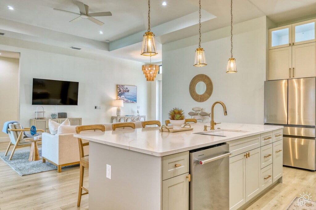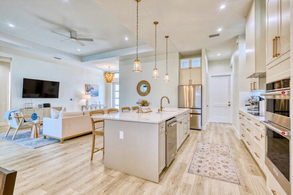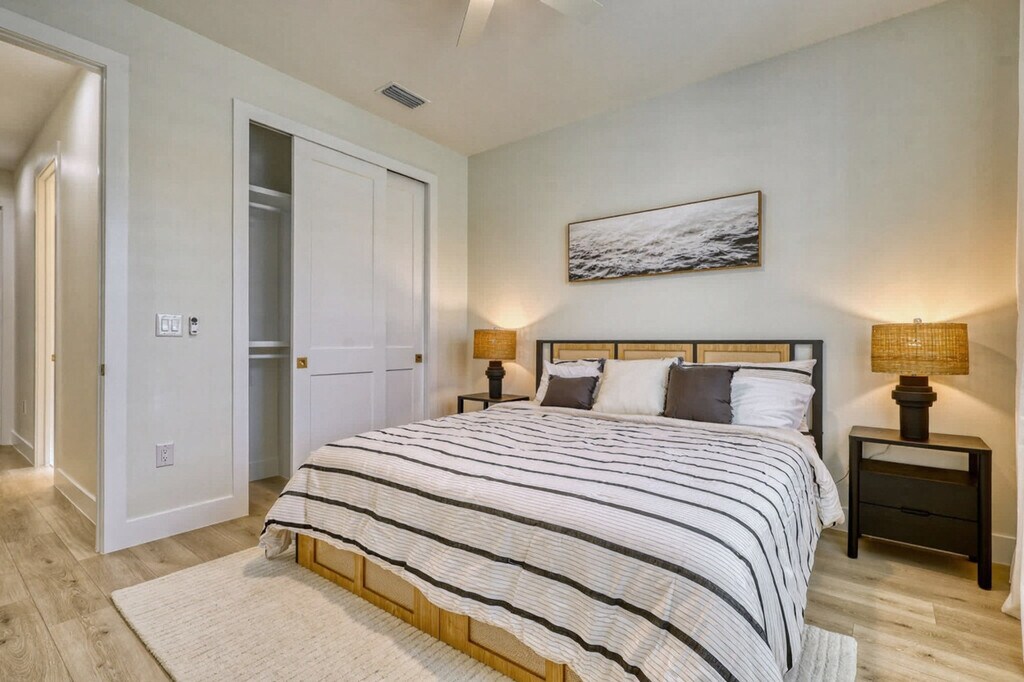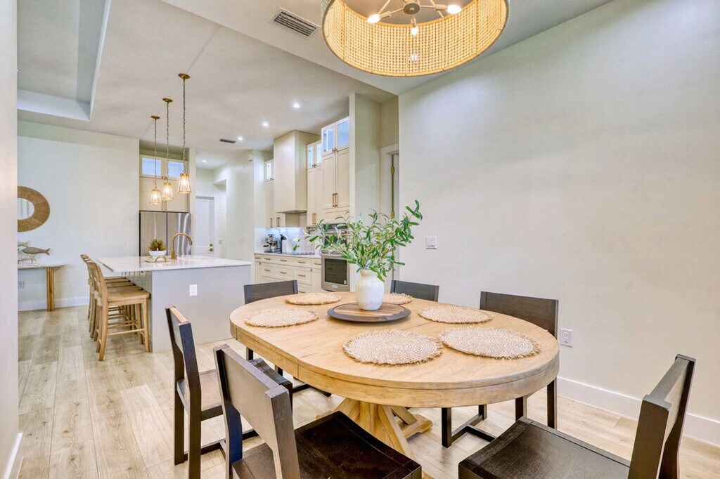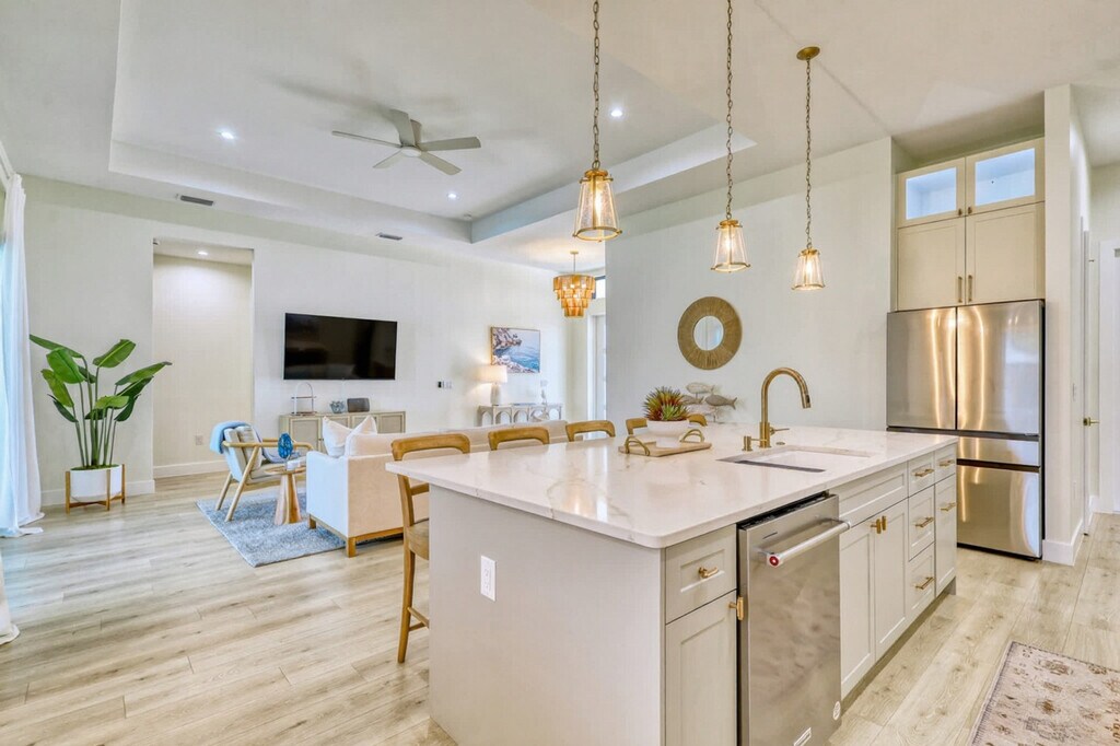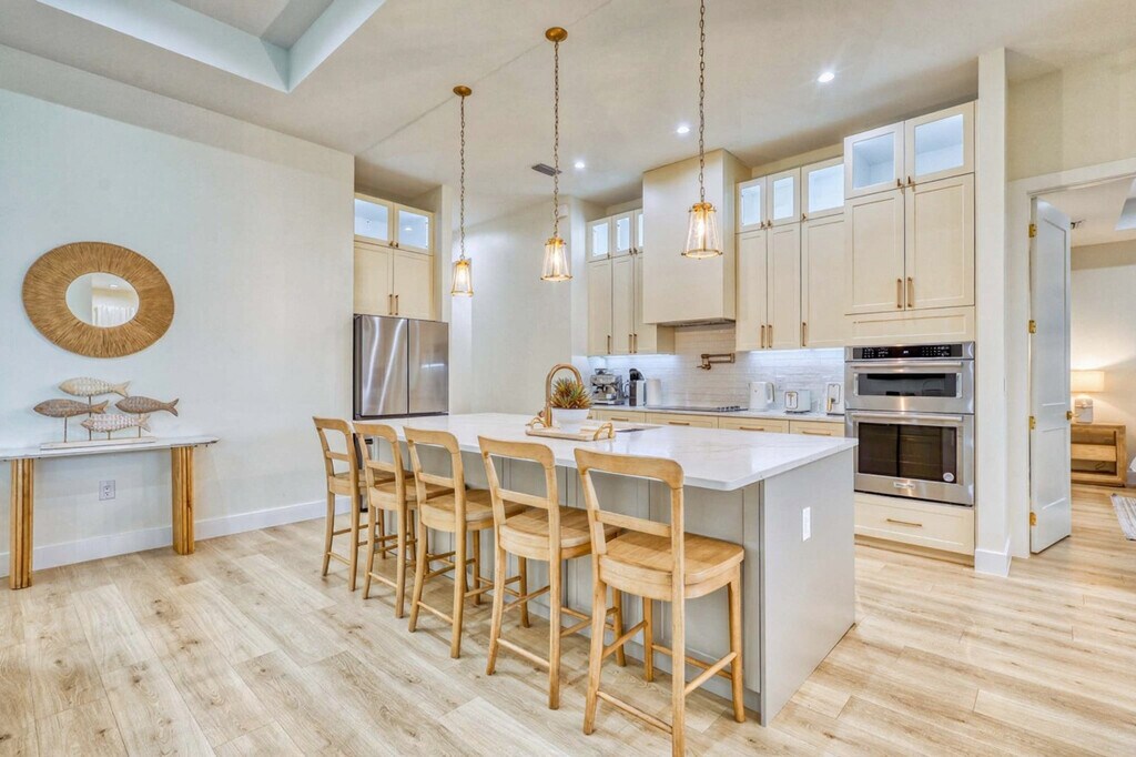 Escape to this newly built, luxurious 4-bedroom home, perfect for families or couples looking to relax in style. Nestled in a serene neighborhood, this modern retreat offers high-end finishes and spacious rooms. Feel at home in this property that comfortably accommodates up to 8 guests. The spacious open floor plan boasts a modern kitchen with top-of-the-line appliances and a cozy living area with large windows letting in natural light. Outside, enjoy a private pool and spa area, perfect for unwinding after a day of exploring. Parking is available for up to 4 vehicles, with easy access to major highways. Uber and Lyft services are readily available. Located in a quiet, upscale neighborhood, this home offers a peaceful retreat while being just minutes from downtown and the beach. Family-friendly parks and top-rated restaurants are just a short drive away. No parties or events are allowed. Quiet hours are from 10 pm to 8 am to respect our neighbors. Booking guests must be at least 23 years old and must accompany the booking party at all times. Only registered guests may be on the property, including the backyard; extra guests will be charged at $50 per person per night. The garage is intended only for storage of luggage and things, and parking or driving a vehicle in the garage is prohibited, with a $500 penalty. Smoking is prohibited on the property, including vaping, with a $550 fine if evidence is found. If evidence of pets is found, a $250 cleaning fee will be applied. Shoes should not be worn throughout the home. If evidence of a party is found, a $550 fee will be assessed. Fireworks are prohibited. Check-in is at 4 PM and check-out is at 11 AM. On Monday and Thursday, please have the garbage and recycling bins to the curb. [SI]