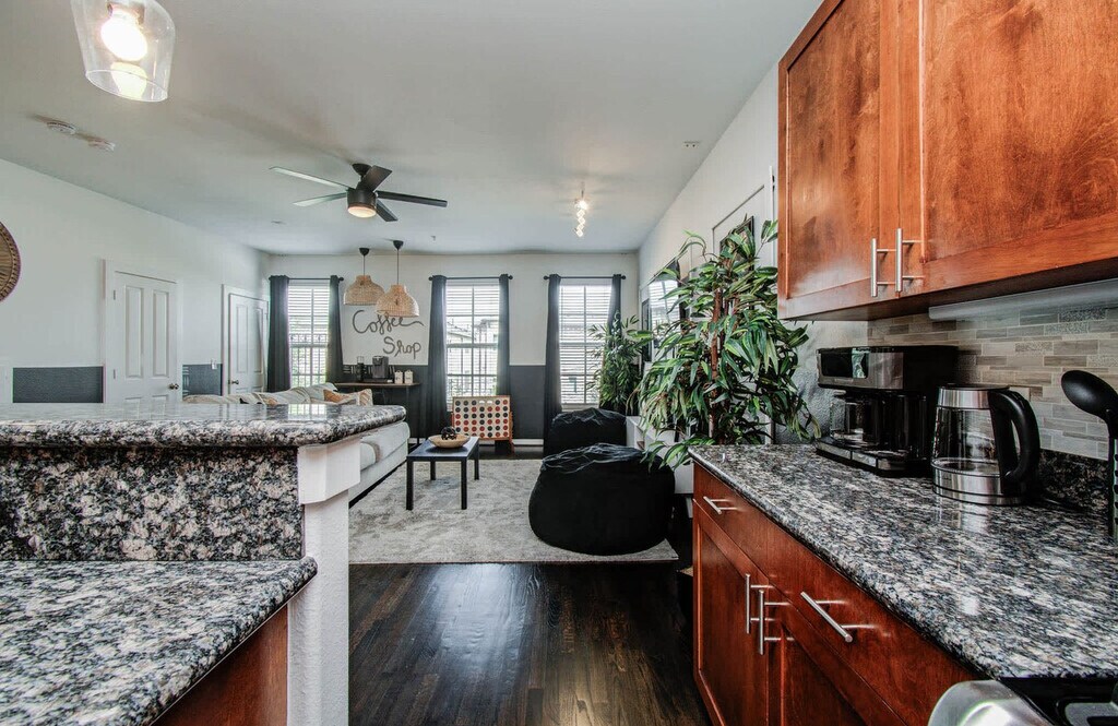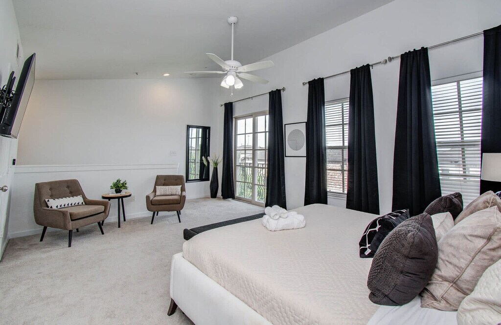 Look no further! You don’t want to miss this Midtown vacation home! Conveniently located in one of Houston’s prime neighborhoods, skip out on all the hassle of traffic jams and live where others come to play! Full of timeless charm and thoughtful touches, this place has all the comforts of home and more! This is a 2-story apartment located on the 3rd floor of the building. Feeling inspired by the southern culinary spirit of Houston? Whether you’re looking to whip up some morning biscuits or simply unpack the take-out, this kitchen is fully equipped for your cooking needs! It includes standard appliances, such as a fridge, freezer, stove, oven, dishwasher, and microwave, along with a kitchen island with seating for 2. The living room features an open-concept layout that makes it easy to socialize with those in the kitchen. It includes a comfortable couch, bean bags, a coffee table, a designer rug, a flat-screen TV, and high-speed Wi-Fi. The bedroom offers a king bed with fluffy pillows and crisp linens, an ensuite bathroom, matching nightstands and bedside lamps, a dedicated sitting area, and a wall-mounted TV. An air mattress is available for an additional guest. Additional amenities include a dedicated parking spot and a washer and dryer available for laundry. Located in the much-desired neighborhood of Midtown, you’ll be only minutes away from some of Houston’s most popular attractions, diverse dining and entertainment options, and a thriving cultural scene. Explore nearby attractions like The Houston Museum of Natural Science, Houston Zoo, and Minute Maid Park, or enjoy the exciting neighborhoods of Midtown, Washington Avenue, and Montrose for great restaurants and lively bars. We do not allow parties or large unauthorized gatherings of any sort on our property. Only registered guests are allowed over while renting the property. Smoking of any type is not allowed and violations are subject to a $450 fine plus the cost to clean, deodorize, and repair damages. Check-in is at 4pm and checkout is at 10am. Pets are not allowed. A noise alert device is installed to monitor reasonable noise levels, ensuring compliance with local noise ordinances and occupancy regulations. Rest assured, this device does not record or store sound data. Small low-key gatherings are allowed only upon request and approval in advance. [SI]
