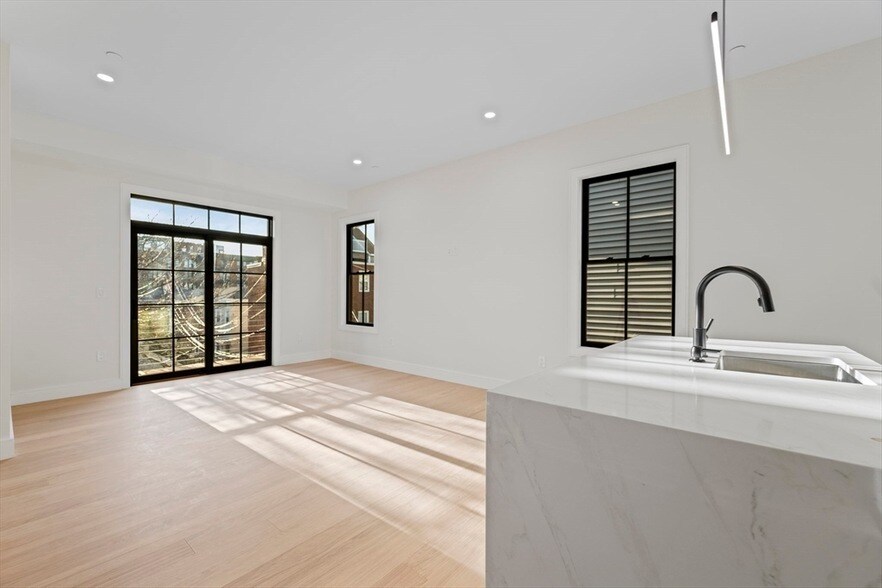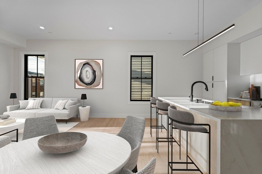 Start off 2026 in your beautiful new home! Built in late 2024, this unit is a meticulously designed 2 Bed+Office/2 Bath, 1080 Sq ft with TWO Private Decks + Assigned GARAGE Parking, steps from Washington Village, South Boston's Waterfront, and multiple public transportation options! Large open-concept living with soaring ceilings and oversized windows throughout. Kitchen features a quartz island with seating for 3-4, slab cabinetry and Fisher/Paykel appliance package. Kitchen opens to living/dining area with private deck off front of unit, perfect for entertaining. Large Primary Suite with private office, large closet + en suite bath, double vanity + oversized tiled glass shower and additional private deck. Large guest bedroom + guest bath. Hardwood throughout. In-unit washer/dryer and central AC. TONS of natural light. Don't miss out!