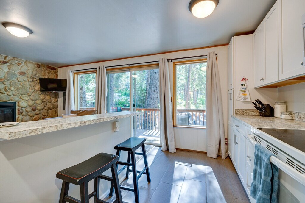 The advertised rate of $3,300/month is the lowest available price, based on a 1 month(s) stay with a move-in date of April 21, 2026. Rates vary depending on the duration of stay, season, and other parameters. For exact pricing and additional pricing components, please visit our website and enter your desired move-in and move-out dates. The rate is applicable when billed upfront; it can be higher if billed in multiple payments. Feel at home in this beautiful 1-bedroom, 1-bathroom cabin in Leavenworth, Washington. Situated within the Ponderosa Community Club, this cabin requires climbing 5 steps to enter. This family-friendly cabin offers free Wi-Fi, a smart TV, a gas fireplace (seasonal), and board games for indoor entertainment. The kitchen is equipped with a refrigerator, microwave, dishware, flatware, stove, oven, cooking basics, spices, coffee maker, blender, and toaster. You'll also find linens, towels, complimentary toiletries, a window A/C unit, a washer and dryer, ceiling fans, electric heating, a hair dryer, and hangers. Pets are welcome with a fee of $50 (plus fees and taxes, 2 max). RVs are allowed on-site, and RV hookups are available. Enjoy private access to the Wenatchee River and on-site hiking trails. The cabin is also near Lake Wenatchee State Park, Kahler Mountain Club, and Leavenworth Ziplines. The seasonal community pool is open Memorial Day to Labor Day. The gas fireplace is available for guest use during the fall and winter months, starting in September. [SI]