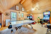 The advertised rate of $4,073/month is the lowest available price, based on a 1 month(s) stay with a move-in date of April 30, 2026. Rates vary depending on the duration of stay, season, and other parameters. For exact pricing and additional pricing components, please visit our website and enter your desired move-in and move-out dates. The rate is applicable when billed upfront; it can be higher if billed in multiple payments. Feel at home in this 2-bedroom, 2-bath cabin in Leavenworth, offering 2,200 sq ft of living space in the Ponderosa Community Club. Although this 2-story property features step-free entry and 2 bedrooms on the 1st floor, permanently fixed ladders are required to access the loft and game room. This cabin features a rustic interior, a fully equipped kitchen, and a game room. The kitchen includes cooking basics, a refrigerator, microwave, stove/oven, dishwasher, and coffee maker. Enjoy the large 900 sq ft deck with a TV, an 8-person hot tub, a dual chamber grill (pellet and gas), a 36" gas griddle, a dining area, a picnic table, and ample seating. Indoor entertainment includes 2 Smart TVs, a wood-burning stove, an air hockey table, a pool table (converts to a dining table and ping pong table), a game room with 3 Arcade1up machines, a pinball machine, racing arcade games (converted to run Nintendo Switches), and board games. Other amenities include free high-speed Wi-Fi, linens/towels, 2 a/c units, central heating, wall heaters, an in-unit washer/dryer, hangers, trash bags/paper towels, and complimentary toiletries. Covered parking is available for 2 vehicles, with space for 4 vehicles in the driveway. RV/trailer parking is also allowed on-site. Venture out and hike through Lake Wenatchee State Park or hit the slopes at Stevens Pass. The Ponderosa Community Club offers a clubhouse (reserved with an additional fee), a heated seasonal outdoor pool (Memorial Day-Labor Day), a playground area with a basketball court, a pickleball court, river/beach access, and several hiking trails. Four-wheel drive or all-wheel drive is necessary in the winter months to access the property. No pets, events, parties, or large gatherings are allowed. This is a non-smoking property. Your safety matters. This property features 2 exterior security cameras: 1 camera is located on the carport facing the driveway, and 1 camera is built into the Smart door lock of the front door facing the front of the cabin. The cameras do not look into interior spaces. The cameras record video and sound when activated by motion. They will record when they first sense motion and 30 seconds after the last motion is detected. [SI]