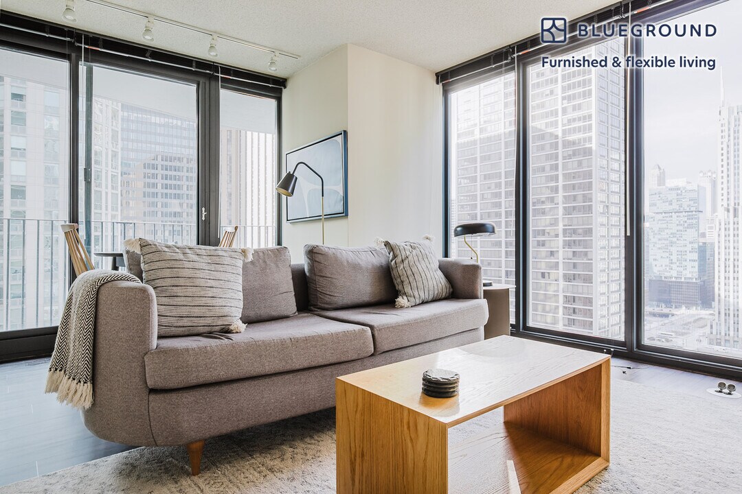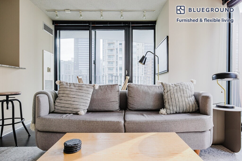 Discover the best of Chicago, with this one bedroom apartment in New Eastside with balcony views over the city. It’ll be easy to simply show up and start living in this furnished apartment with its fully equipped kitchen, living room, and our dedicated, on-the-ground support. (ID #CHI1198) The advertised rate of $2,560/month is the lowest available price, based on a 1 month(s) and 10 day(s) stay with a move-in date of March 10, 2026. If you’re looking for a 1-year stay, the rate is $3,100/month. Rates vary depending on the duration of stay, season, and other parameters. For exact pricing and additional pricing components, please visit our website and enter your desired move-in and move-out dates. The rate is applicable when billed upfront; it can be higher if billed in multiple payments. Brokers are welcome to reach out. Were you looking for an unfurnished lease? Try Blueground instead and upgrade from unfurnished to furnished living: - Furnished at rates comparable to unfurnished - No setup or furniture costs - save thousands - Move-in ready - save time, just bring your suitcase Designed with you in mind As with any Blueground apartment, you’ll find a thoughtfully designed space complete with beautiful furniture and a fully equipped kitchen in this one bedroom property. And, thanks to our superior quality mattresses, luxury linens, and towels, you can relax knowing you’ll always feel comfortably at home. When you’re ready for some fun, you can take in the Chicago vibes or bring the entertainment to you with the premium wireless speaker or smart TV. This apartment also offers in-apartment laundry. Sleeping arrangements King Bed, 70.8in/180cm Amenities Building amenities unique to this one bedroom apartment include an on-site: - Dryer - Elevator - Game room - Swimming pool - Washing machine - Library - Playroom - Sauna Arrival and ongoing support The entire apartment is yours to enjoy! Throughout your stay, you’ll have access to our Client Experience team through the Blueground App. You can schedule additional cleanings, submit maintenance requests, and view our neighborhood recommendations with just a few taps. We’ll share all details upon confirmation of your stay. Other things to note Building amenities may have an extra cost. This Blueground apartment has flexible lease options, allowing you to book it for one month, a year, or more. We take great pride in ensuring every photo displayed is shot in our own units with our actual furnishings. That said, we regularly refresh our decor and furniture arrangement, which may differ from what’s pictured. [SI]