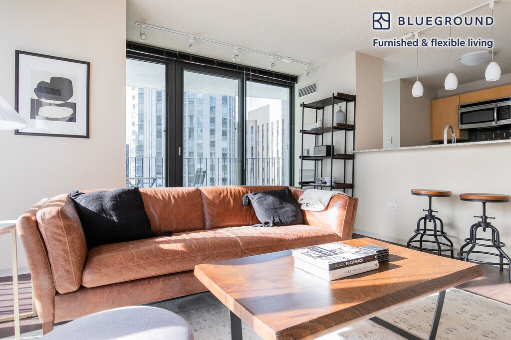 Show up and start living from day one in Chicago with this spacious one bedroom Blueground apartment. You’ll love coming home to this thoughtfully furnished, beautifully designed, and fully equipped New Eastside home with stunning balcony views over the city. (ID #CHI1197) The advertised rate of $2,960/month is the lowest available price, based on a 1 month(s) and 3 day(s) stay with a move-in date of February 18, 2026. If you’re looking for a 1-year stay, the rate is $3,360/month. Rates vary depending on the duration of stay, season, and other parameters. For exact pricing and additional pricing components, please visit our website and enter your desired move-in and move-out dates. The rate is applicable when billed upfront; it can be higher if billed in multiple payments. Brokers are welcome to reach out. Were you looking for an unfurnished lease? Try Blueground instead and upgrade from unfurnished to furnished living: - Furnished at rates comparable to unfurnished - No setup or furniture costs - save thousands - Move-in ready - save time, just bring your suitcase Designed with you in mind Thoughtfully designed with bespoke finishes, modern furnishings, and a fully equipped kitchen, you’ll enjoy that “I’m home” feeling with this Blueground apartment. Whether you’re lounging in your lovely living room streaming the latest and greatest entertainment on the smart TV or premium wireless speaker, or getting some well-earned rest on the superior quality mattress with luxury linens, you’ll fall in love with everything this New Eastside apartment has to offer. This apartment also offers in-apartment laundry. Sleeping arrangements Queen Bed, 63in/160cm Amenities Building amenities unique to this one bedroom apartment include an on-site: - Dryer - Elevator - Game room - Swimming pool - Washing machine - Library - Playroom - Sauna Arrival and ongoing support The entire apartment is yours to enjoy! Throughout your stay, you’ll have access to our Client Experience team through the Blueground App. You can schedule additional cleanings, submit maintenance requests, and view our neighborhood recommendations with just a few taps. We’ll share all details upon confirmation of your stay. Other things to note Building amenities may have an extra cost. This Blueground apartment has flexible lease options, allowing you to book it for one month, a year, or more. We take great pride in ensuring every photo displayed is shot in our own units with our actual furnishings. That said, we regularly refresh our decor and furniture arrangement, which may differ from what’s pictured. Also note - This apartment is in close proximity to a fire/police station, so you can expect noise from time to time - This is a guarded building equipped with a doorman/concierge at all times [SI]