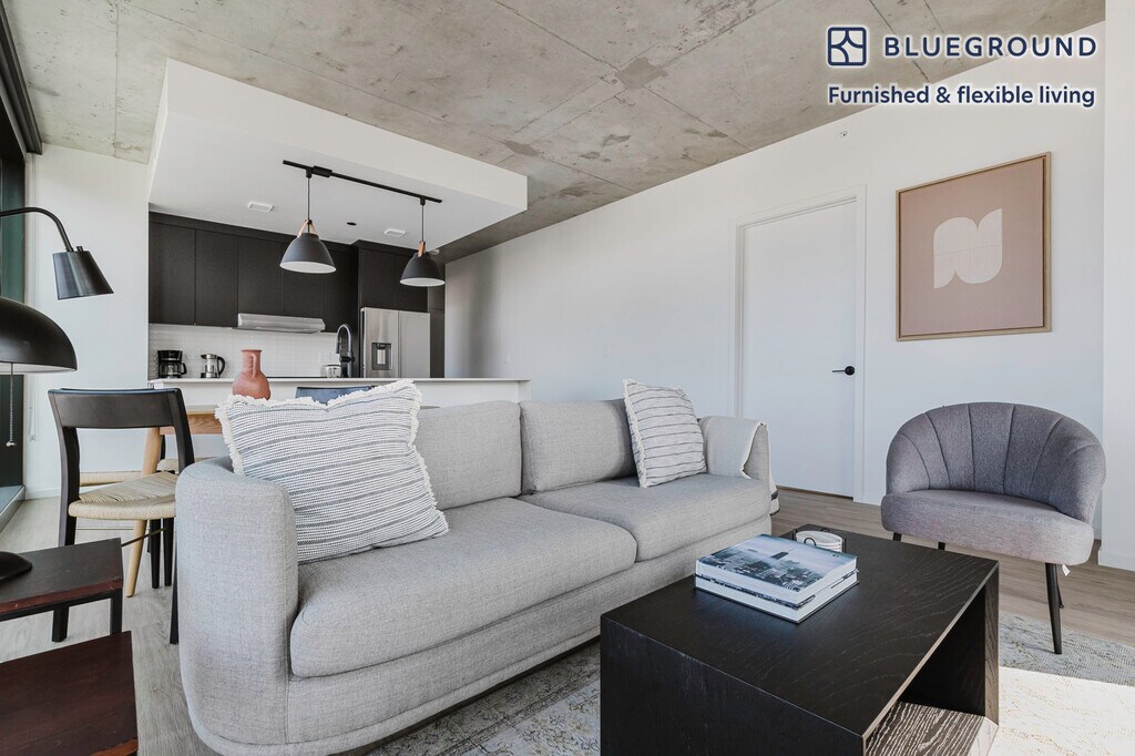 Show up and start living from day one in Chicago with this cozy two bedroom Blueground apartment. You’ll love coming home to this thoughtfully furnished, beautifully designed, and fully equipped Fulton Market District home. (ID #CHI1096) The advertised rate of $4,660/month is the lowest available price, based on a 12 month(s) stay with a move-in date of May 1, 2026. Rates vary depending on the duration of stay, season, and other parameters. For exact pricing and additional pricing components, please visit our website and enter your desired move-in and move-out dates. The rate is applicable when billed upfront; it can be higher if billed in multiple payments. Brokers are welcome to reach out. Were you looking for an unfurnished lease? Try Blueground instead and upgrade from unfurnished to furnished living: - Furnished at rates comparable to unfurnished - No setup or furniture costs - save thousands - Move-in ready - save time, just bring your suitcase Designed with you in mind As with any Blueground apartment, you’ll find a thoughtfully designed space complete with beautiful furniture and a fully equipped kitchen in this two bedroom property. And, thanks to our superior quality mattresses, luxury linens, and towels, you can relax knowing you’ll always feel comfortably at home. When you’re ready for some fun, you can take in the Chicago vibes or bring the entertainment to you with the premium wireless speaker or smart TV. This apartment also offers in-apartment laundry. Sleeping arrangements King Bed, 70.8in/180cm Queen Bed, 63in/160cm Amenities Building amenities unique to this two bedroom apartment include an on-site: - BBQ Area - Dryer - Elevator - Swimming pool - Washing machine - Lounge Arrival and ongoing support The entire apartment is yours to enjoy! Throughout your stay, you’ll have access to our Client Experience team through the Blueground App. You can schedule additional cleanings, submit maintenance requests, and view our neighborhood recommendations with just a few taps. We’ll share all details upon confirmation of your stay. Other things to note Building amenities may have an extra cost. This Blueground apartment has flexible lease options, allowing you to book it for one month, a year, or more. We take great pride in ensuring every photo displayed is shot in our own units with our actual furnishings. That said, we regularly refresh our decor and furniture arrangement, which may differ from what’s pictured. Also note - This apartment is located near a railway, so expect to hear moderate noise when trains pass - This is a guarded building equipped with a doorman/concierge at all times [SI]
