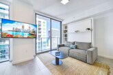 Welcome to your luxury studio in the heart of Downtown Miami at YOTELPAD, offering stunning views and serving as the perfect launchpad for exploring the city's best attractions. Enjoy a stunning rooftop pool and premium amenities for an unforgettable stay. Step into a stylish and smartly designed studio, created for ultimate comfort and convenience during your Miami stay. The smart layout includes a comfortable primary bed and a flexible sofa bed, perfect for relaxing after a day of exploring. A sleek, fully equipped kitchen has everything you need to prepare meals and snacks with ease. Refresh in a pristine, modern bathroom with premium fixtures and essential amenities provided. A washer and dryer are located inside the unit for your ultimate convenience, and enjoy incredible skyline scenery directly from your window. Your studio is located in the vibrant heart of Downtown Miami, putting the city's best culture, dining, and entertainment right at your doorstep. You are within walking distance of top-tier dining options, craft cocktail spots, and arts and culture venues like the Pérez Art Museum Miami and the Skyviews Miami Observation Wheel. Getting around is effortless from this unbeatable central location, with Bayfront Park, Bayside Marketplace, and the Kaseya Center just a short stroll away. The College/Bayside Metromover station is one block away, offering free and easy connections throughout Downtown and Brickell, with the Metrorail and Brightline stations also nearby. Loud noise and parties are strictly prohibited, and violations may result in significant fines from building management. Smoking is not allowed indoors, as it may result in a fine. Check-in is scheduled for 4:00 p.m., and check-out is at 11:00 a.m. If you need a late check-out, please contact us with 24 hours' notice, as this will generate an additional cost. Package deliveries to the property address are not allowed. In case of any lost linens or apartment keys, an additional cost will be charged to replace them. Don't forget to turn off the air conditioning when leaving to maintain a comfortable environment for everyone. [SI]