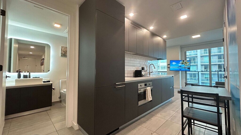 Welcome to your luxury retreat in the heart of Downtown Miami, offering stunning views and the perfect launchpad for exploring the city's best attractions. Experience an unbeatable location, just steps from world-class concerts and Miami Heat games at the Kaseya Center, the beautiful green space and bay views of Bayfront Park, and premier shopping and dining at Brickell City Centre. Step into a stylish and smartly designed space, created for ultimate comfort and convenience during your Miami stay. Relax in a modern living space featuring a plush sofa bed, unwind in a comfortable bedroom area with a premium queen-size bed and quality linens, and enjoy a sleek, fully equipped kitchen for preparing meals and snacks with ease. Refresh in a pristine, modern bathroom with a walk-in shower and essential toiletries provided, and enjoy the convenience of keyless entry and an in-unit washer and dryer. Enjoy an upgraded access experience with keyless entry, using our smart lock app and requesting multiple digital codes for easy entry for your group. Please note that washcloths are not provided, and package deliveries to the property address are not allowed. In case of any lost linens or apartment keys, an additional cost will be charged to replace them. Your condo is in the vibrant heart of Downtown Miami, putting the city's best culture, dining, and entertainment right at your doorstep. Enjoy top-tier dining with a short walk to popular spots like Cvi.che 105 for authentic Peruvian cuisine, Jaguar Sun for award-winning cocktails and exceptional pasta, and Motek Downtown for outstanding Israeli-Mediterranean food. Explore craft cocktails and nightlife at Over Under and Lost Boy Dry Goods, and immerse yourself in arts and culture with walking distance to the Pérez Art Museum Miami, the Phillip and Patricia Frost Museum of Science, and the Skyviews Miami Observation Wheel. Getting around is effortless from this central location, with Bayfront Park, Bayside Marketplace, the Kaseya Center, and countless restaurants just a short stroll away. Public transit options include a nearby Metromover station offering free and easy connections throughout Downtown and Brickell, as well as the Metrorail and Brightline. Whole Foods Market is also a short walk away for groceries and high-quality prepared meals. Loud noise and parties are strictly prohibited, and violations may result in significant fines from building management, which will be charged directly to the responsible guest. Smoking is not allowed indoors, as it may result in a fine. Quiet hours are between 10:00 p.m. and 8:00 a.m. Check-in is scheduled for 4:00 p.m., and check-out is at 11:00 a.m. If you need a late check-out, please contact us with 24 hours' notice, as this will generate an additional cost. To ensure a secure experience, all members staying must be registered by providing a photo ID on the same day as check-in. Please turn off the air conditioning when leaving to maintain a comfortable environment for everyone. [SI]