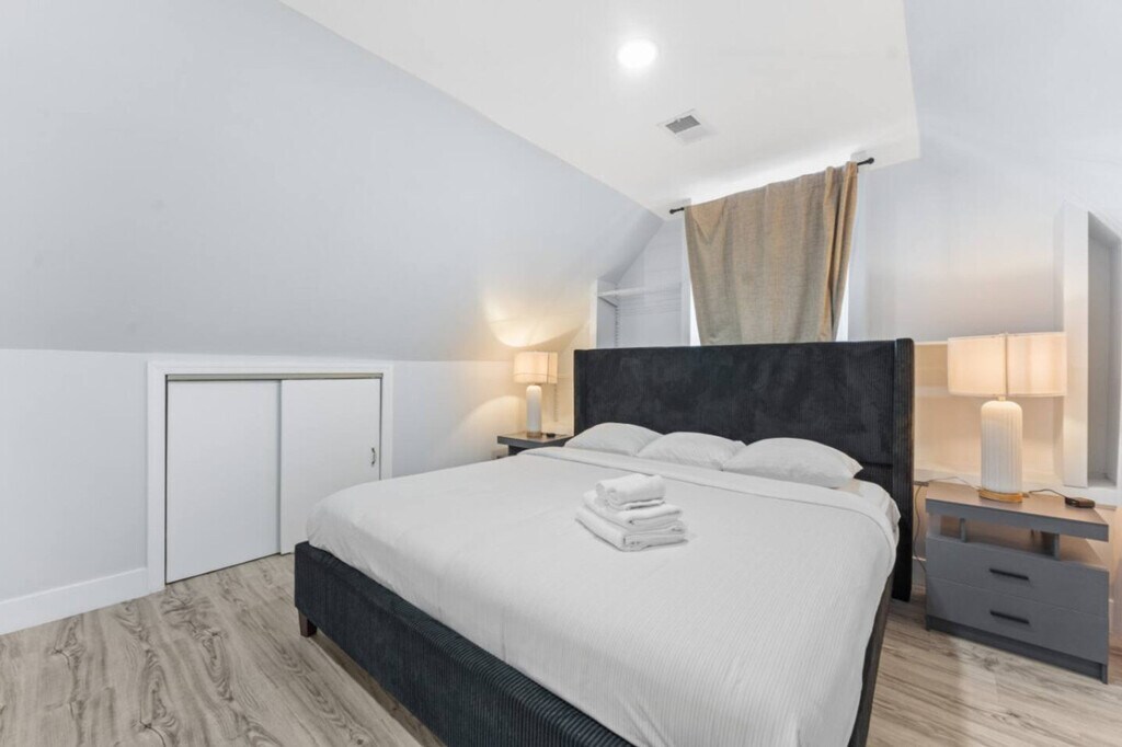 Feel at home in this spacious 5-bedroom duplex, ideal for families and groups, and located just a 20-minute drive from New York City. This apartment sleeps up to 14 guests plus an infant, and includes two full bathrooms, a comfortable living room, and a dining area with seating for four. Enjoy convenient private entry and access to a large free parking lot. Quiet hours are after 9 pm. A $500 party fee will be assessed for any unauthorized party or event. If you do not return your parking pass at the time of checkout, you will be charged a fine of $25. A $500 smoking fine applies, so please avoid smoking in the property. Please ensure you return the remote key for the parking lot to the same place after your stay, as a $500 fee will be charged for any unreturned or lost remotes. Registration Number: STRL-25-0026 [SI]