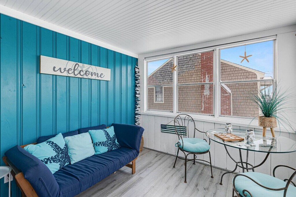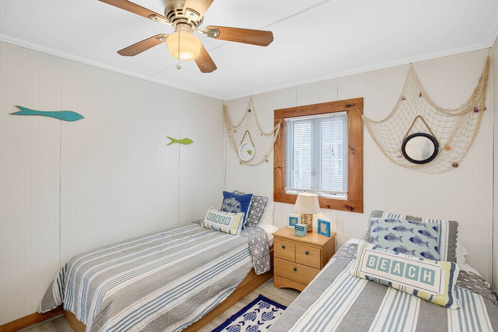Welcome to Blue Chill Cottage, your dream vacation home on the scenic seacoast! This enchanting 750 sq. ft. haven offers a refreshing coastal palette and a flood of natural light that instantly lifts your spirits. The single-story layout ensures easy living and accessibility, perfect for both young families and retirees alike. The heart of this home is the open-concept living area, where the kitchen seamlessly blends with the living room. Prepare gourmet meals in the stunning kitchen, complete with sleek white cabinetry, high-end appliances, and a charming retro-style refrigerator. The adjacent living space is perfect for entertaining, with comfortable seating and beachy decor that sets the mood for relaxation. Both bedrooms are thoughtfully designed to provide serene retreats after long days at the beach. The primary bedroom, a generous 100 sq. ft., boasts soothing blue hues and ample natural light, creating a peaceful oasis. The second bedroom, with its nautical theme and cozy twin beds, is ideal for guests or children. The bathroom is a vision of coastal elegance, featuring a clean, crisp design with modern fixtures and subtle beach-inspired accents. Energy-efficient ceiling fans and plenty of windows ensure the space stays cool and breezy, embodying the laid-back beach lifestyle. Grill, dine, or just enjoy summer stars from your private back deck, which has a large gas grill and dining table that comfortably seats six. For family-friendly homes, a luxury Pack-n-Play or other children's furnishings are available for an additional charge as availability permits. Located in the heart of Hampton, this property puts you just moments away from pristine beaches, local attractions, and the vibrant community. Hampton Beach is the perfect place for families and friends to create enduring memories, offering a variety of amusements. The waves are tame enough for toddlers yet energetic enough for teens to boogie board. After a fun-filled beach day, enjoy Hampton Beach nightlife with fireworks, free concerts, and headline acts. The Boardwalk is lined with amusements for a classic beach vacation, including fresh seafood and mini-golf. Smoking is strictly prohibited, and guests will be fined and immediately evicted for smoking or vaping in the home or on the property. No parties, events, performing artists, or bands are allowed at any time, which are cause for eviction with no refund. If any damage impacts our ability to offer the home for future guests, you will be held liable. Blue Chill offers two tandem spots in the driveway along the left side of the house. Regrettably, Blue Chill does not host furry family members, as it is strictly no pets. Quiet hours are between 10 PM and 8 AM, and guests are expected to respect the neighbors' right to peacefully enjoy their homes. [SI]