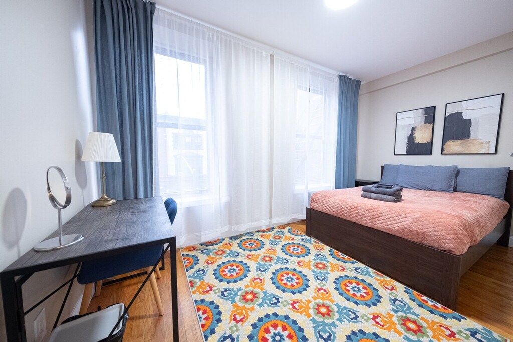 Welcome to your home away from home! This spacious 3-bedroom apartment offers everything you need for a comfortable and enjoyable long-term stay in the heart of the city. Easily access your apartment with the convenience of an elevator, ideal for guests with luggage or mobility concerns. Prepare delicious meals with ease in the fully equipped kitchen, complete with a large refrigerator, stove top, oven, coffee maker, Keurig machine, toaster, microwave, dishwasher, and all the utensils and cutlery you might need during your stay. Unwind and relax in the huge living room, featuring a cozy couch, dining area, and a 55-inch TV for entertainment. Each of the three bedrooms is designed for your utmost comfort, equipped with plush bedding, desks, mirrors, closets, hair dryers, AC, and ceiling fans. The first bedroom boasts a queen-size bed, while the second and third bedrooms offer full-size beds, ensuring a restful night's sleep for everyone. Enjoy the convenience of extra storage space, ample natural light, and a vacuum cleaner for added comfort and cleanliness. All bed linen, towels, and an iron are provided to make your stay hassle-free. For guests traveling by car, street parking is available and free of charge. Be mindful of alternate side parking regulations, which vary by street and day of the week. Take care to read all signs to avoid parking tickets. Conveniently situated just two blocks from both Central Park and Morningside Park, this apartment provides easy access to the natural beauty and recreational opportunities of these iconic green spaces. A leisurely 15-minute stroll will lead you to the historic campus of Columbia University. Navigating the city is a breeze with multiple subway lines nearby. The Cathedral Parkway subway station (A, B, C orange, blue line) and Central Park North (110 St) subway station (2, 3 red line) are within walking distance, offering seamless connections to all corners of New York City. Explore the vibrant neighborhood and discover a variety of fitness options, including Blink, Liberated Fitness NYC, and NYC Sports Clubs. Stock up on groceries at CTown Supermarkets, located just a short distance away. When it's time to dine out or grab a coffee, you'll find an array of restaurants and cafes along Frederick Douglass Blvd, catering to every palate and craving. Smoking inside or outside of the apartment will result in an automatic fine of $500. Pets are not allowed. Luggage storage is not available. Please use the service luggagehero com to store your luggage before check-in or after check-out. All guests must respect quiet hours ranging from 10 pm to 7 am. You cannot receive mail at this address, please consider opening a PO Box. Check-out time is at 11:00 AM. Excessive cleaning charges may apply at the owner's discretion. Stay connected with complimentary Wi-Fi and enjoy access to a wide range of entertainment options with cable/satellite TV. All utilities, including heat, hot water, and gas/electricity, are included in your stay. Kindly note that a $350 refundable security deposit is required and will be collected directly by the partner after your booking is confirmed. The security deposit will be handled through direct communication with the partner and is not processed automatically. [SI]