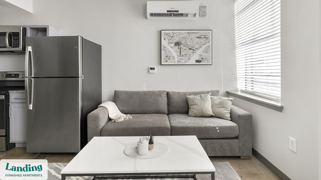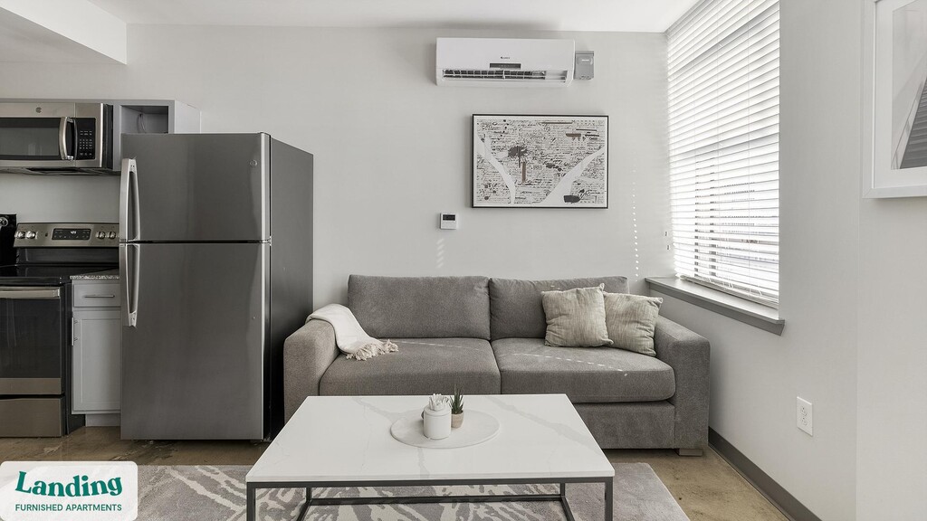 Landing offers flexible lease terms from weeks to months. Please always visit our website or contact us for the latest pricing & availability. Stay longer, save more: 6-Month Minimum base rent: starts at $1526/mo 12-Month Minimum base rent: starts at $1326/mo Landing offers flexible leases across a network of over 35,000 fully-furnished apartments throughout 375+ cities so you can rent on your terms, practically anywhere, and avoid the hassle of paying deposits or application fees. Visit to learn about all the benefits of a Landing membership, see our competitive up-to-date pricing, explore available apartments, take virtual tours, and make reservations online without jumping through traditional rental hoops. Landing's apartments at Lofts at American Life are designed for comfortable, easy living, with the ability to stay as long as you like. Experience living with Landing Every apartment is outfitted with all the modern essentials including: custom-designed furnishings, a fully-equipped kitchen with deluxe stainless steel appliances, a gourmet coffee maker, premium linens, Smart TVs, and incredibly fast, reliable internet for working from home. When you live with Landing, you'll enjoy a hassle-free experience with the added benefit of 24/7 access to our dedicated member experience team. Some of the nitty-gritty: a background check and proof of income are required; we're completely smoke-free; bundled utility packages and pricing vary based on length of stay; pet-friendly options available; listed price reflects a 12-month minimum stay.