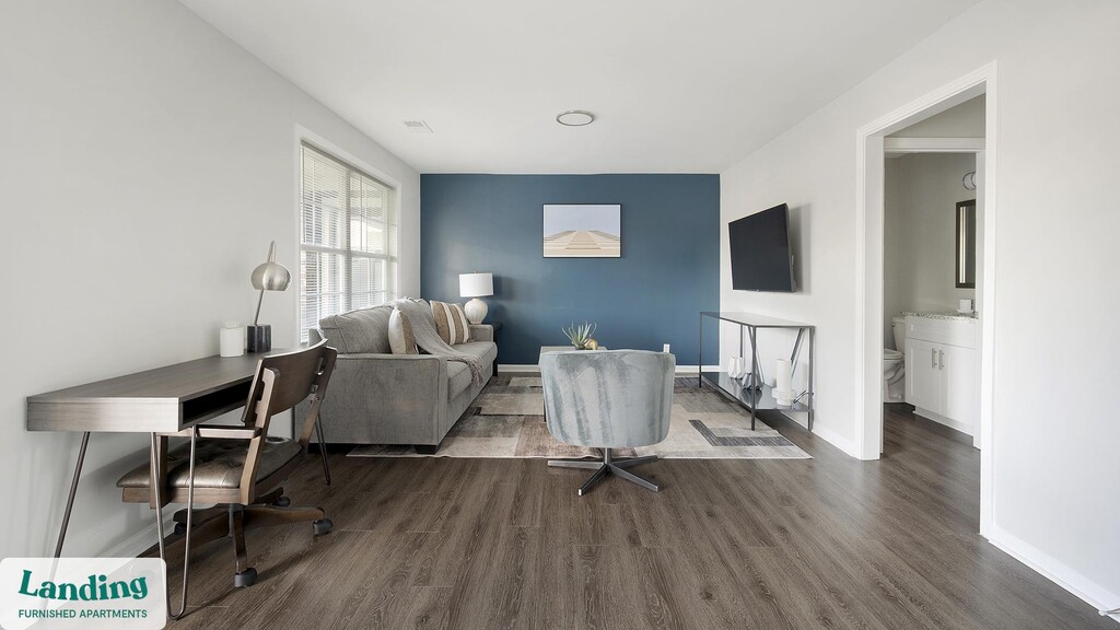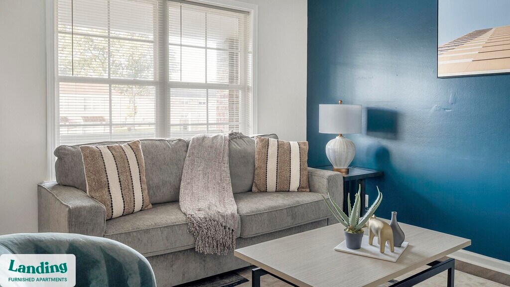 Landing offers flexible lease terms from weeks to months. Please always visit our website or contact us for the latest pricing & availability. Stay longer, save more: 6-Month Minimum base rent: starts at $1653/mo 12-Month Minimum base rent: starts at $1599/mo Landing offers flexible leases across a network of over 35,000 fully-furnished apartments throughout 375+ cities so you can rent on your terms, practically anywhere, and avoid the hassle of paying deposits or application fees. Visit to learn about all the benefits of a Landing membership, see our competitive up-to-date pricing, explore available apartments, take virtual tours, and make reservations online without jumping through traditional rental hoops. Landing's apartments at Reserve at Drakes Creek are designed for comfortable, easy living, with the ability to stay as long as you like. Experience living with Landing Every apartment is outfitted with all the modern essentials including: custom-designed furnishings, a fully-equipped kitchen with deluxe stainless steel appliances, a gourmet coffee maker, premium linens, Smart TVs, and incredibly fast, reliable internet for working from home. When you live with Landing, you'll enjoy a hassle-free experience with the added benefit of 24/7 access to our dedicated member experience team. Some of the nitty-gritty: a background check and proof of income are required; we're completely smoke-free; bundled utility packages and pricing vary based on length of stay; pet-friendly options available; listed price reflects a 12-month minimum stay.