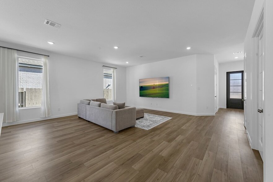 Welcome to this inviting 3-bedroom, 2-bath rental home in the desirable Pomona subdivision. Step inside to an open-concept living, kitchen, and dining area filled with natural light. The kitchen features stainless steel appliances, a center island, and ample cabinetry, with direct access to the backyard. The spacious primary bedroom offers a private retreat with an ensuite bath showcasing dual vanities, a standing shower, and a walk-in closet. Two additional bedrooms are versatile and share a full bath with a tub-shower combo. Enjoy a fully fenced backyard with a covered patio, lush greenery, and a two-car garage. Residents also have access to community amenities, including a gym, swimming pools, playgrounds, jogging trails, and a clubhouse perfect for relaxation and recreation.