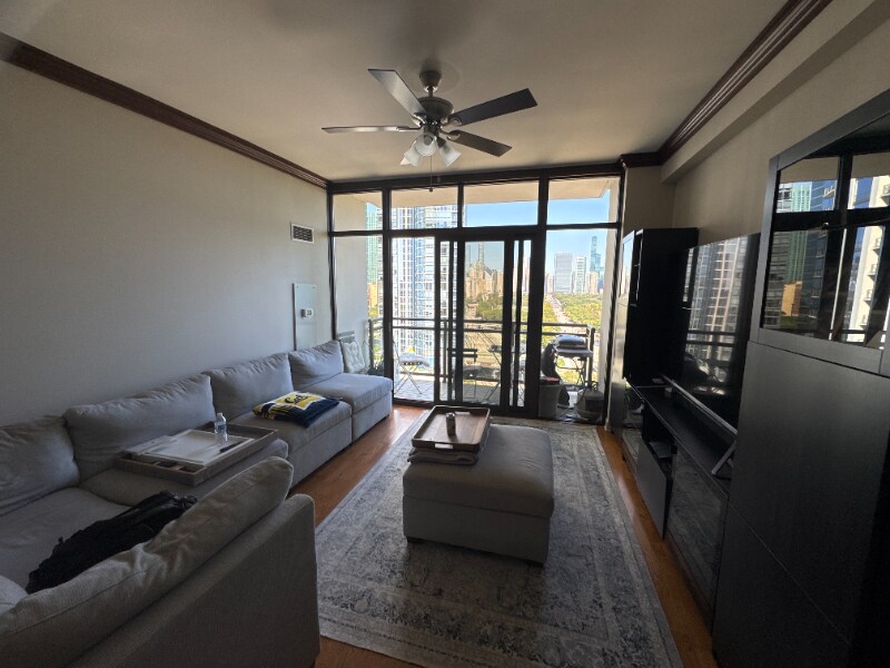 Property Id: 2172882 Luxury city living awaits! This stunning, fully-furnished unit at 233 E 13th St offers a unique opportunity to experience the best of Chicago's South Loop. Unobstructed, breathtaking views of the Chicago skyline, Lake Michigan, and Grant Park create a postcard-perfect backdrop from the floor-to-ceiling windows and private balcony. Watch Navy Pier's fireworks displays from the comfort of your home or primary bedroom. The lease also includes a highly sought-after EV charger in a premium parking spot, which is available for an additional $250 per month, providing unparalleled convenience for the modern city dweller. S This is more than just an apartment; it's a lifestyle. The full-amenity building includes a 24-hour doorman, fitness center, outdoor pool, and penthouse party room with incredible city views. Situated in a prime location, you're just steps away from Grant Park, Museum Campus can be fully furnished for $250 a month