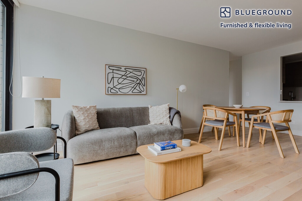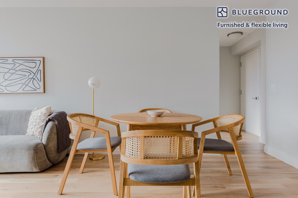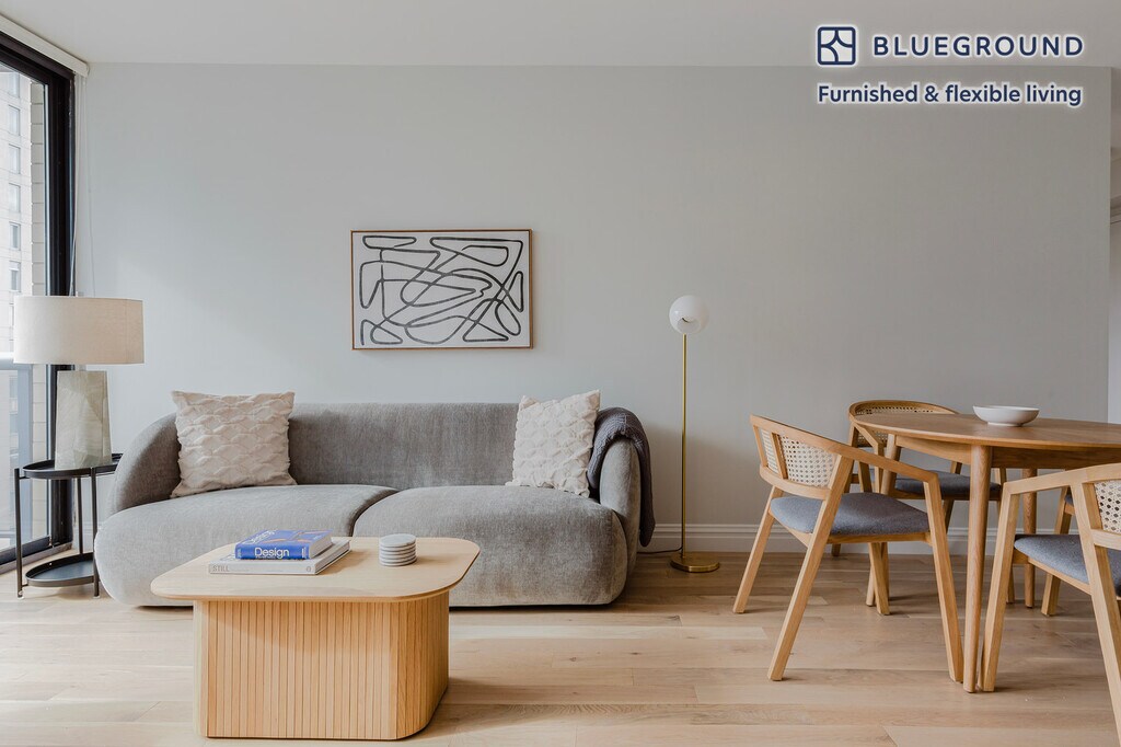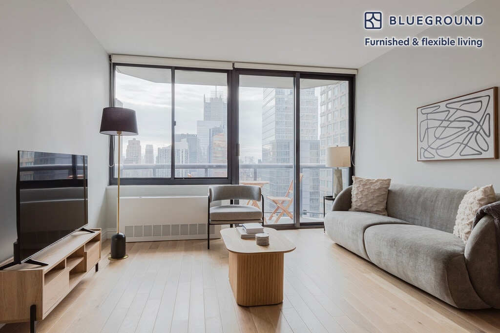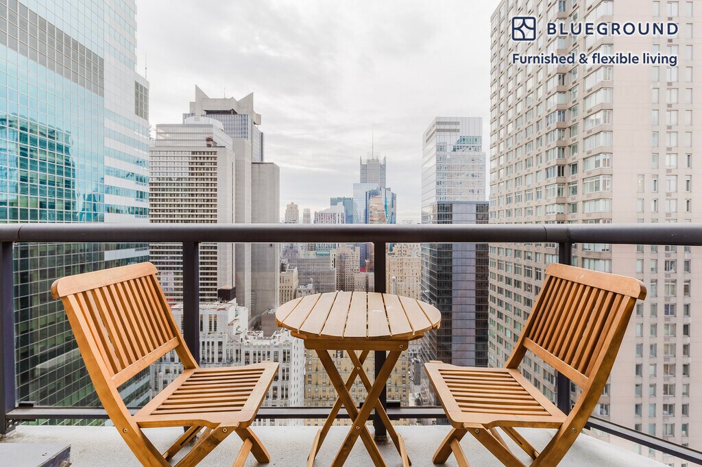 Discover the best of New York, with this two bedroom apartment in Theater District with balcony views over the city. It’ll be easy to simply show up and start living in this elegantly furnished apartment with its fully equipped kitchen, charming living room, and our dedicated, on-the-ground support. (ID #NYC1627) The advertised rate of $5,020/month is the lowest available price, based on a 1 month(s) and 17 day(s) stay with a move-in date of December 19, 2025. If you’re looking for a 1-year stay, the rate is $7,250/month. Rates vary depending on the duration of stay, season, and other parameters. For exact pricing and additional pricing components, please visit our website and enter your desired move-in and move-out dates. The rate is applicable when billed upfront; it can be higher if billed in multiple payments. Brokers are welcome to reach out. Were you looking for an unfurnished lease? Try Blueground instead and upgrade from unfurnished to furnished living: - Furnished at rates comparable to unfurnished - No setup or furniture costs - save thousands - Move-in ready - save time, just bring your suitcase Designed with you in mind Thoughtfully designed with bespoke finishes, modern furnishings, and a fully equipped kitchen, you’ll enjoy that “I’m home” feeling with this Blueground apartment. Whether you’re lounging in your spacious living room streaming the latest and greatest entertainment on the smart TV or premium wireless speaker, or getting some well-earned rest on the superior quality mattress with luxury linens, you’ll fall in love with everything this Theater District apartment has to offer. This apartment also offers in-apartment laundry. Sleeping arrangements King Bed, 70.8in/180cm Queen Bed, 63in/160cm Amenities Building amenities unique to this two bedroom apartment include an on-site: - Doorman - Dryer - Elevator - Washing machine - Lounge - Pets allowed Arrival and ongoing support The entire apartment is yours to enjoy! Throughout your stay, you’ll have access to our Client Experience team through the Blueground App. You can schedule additional cleanings, submit maintenance requests, and view our neighborhood recommendations with just a few taps. We’ll share all details upon confirmation of your stay. Other things to note Building amenities may have an extra cost. This Blueground apartment has flexible lease options, allowing you to book it for one month, a year, or more. Pets are welcome, though weight limits and breed restrictions apply and may incur fees. Brokes CYOF. We take great pride in ensuring every photo displayed is shot in our own units with our actual furnishings. That said, we regularly refresh our decor and furniture arrangement, which may differ from what’s pictured. Also note - Other apartments in this building are undergoing renovations, and you may hear construction noise inside your apartment from time to time