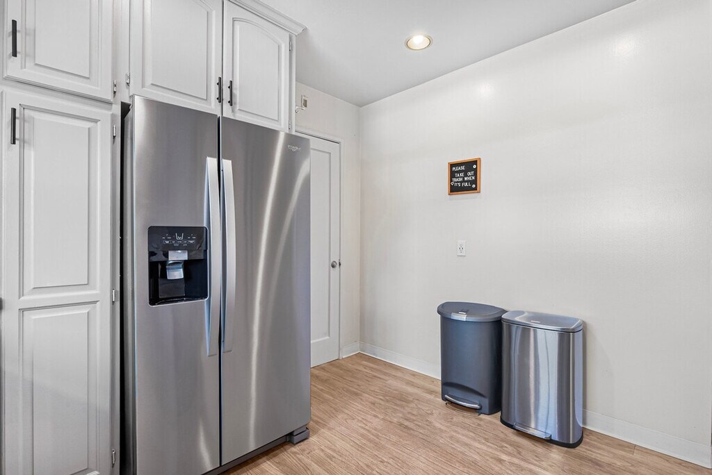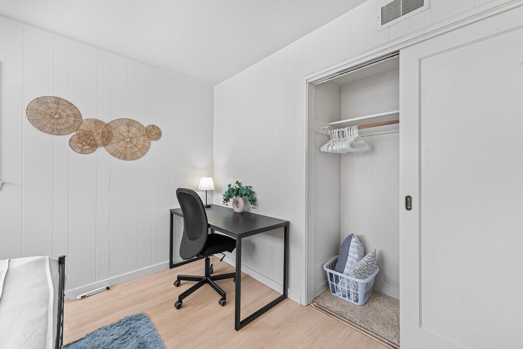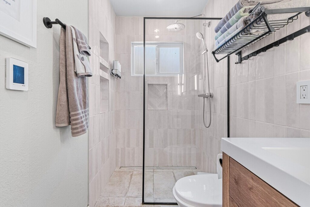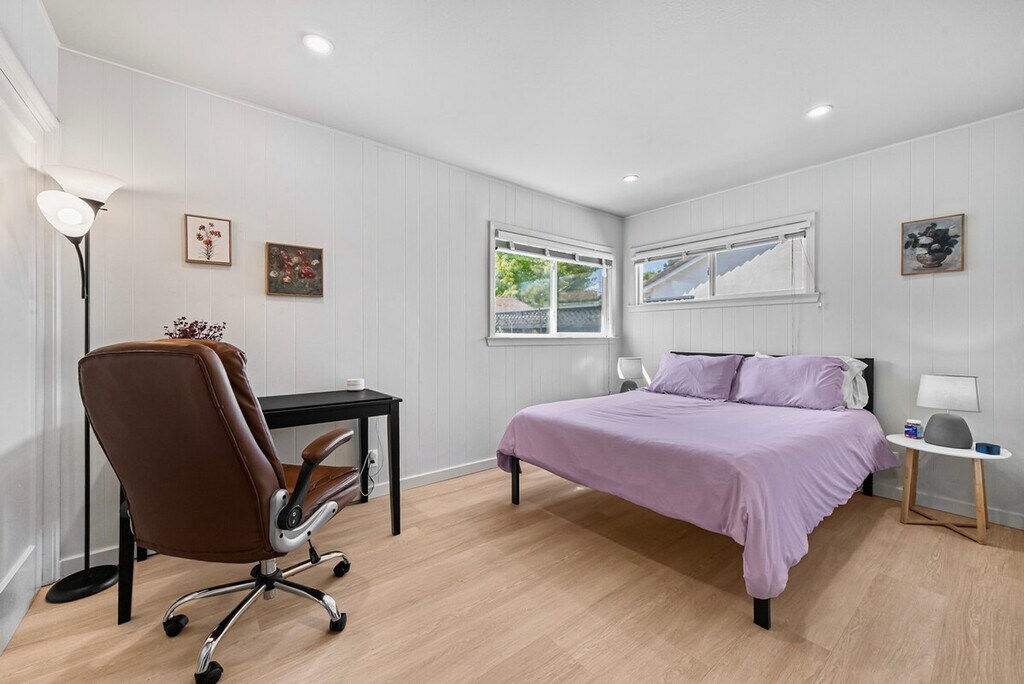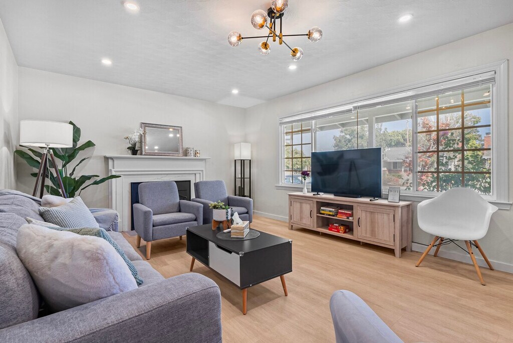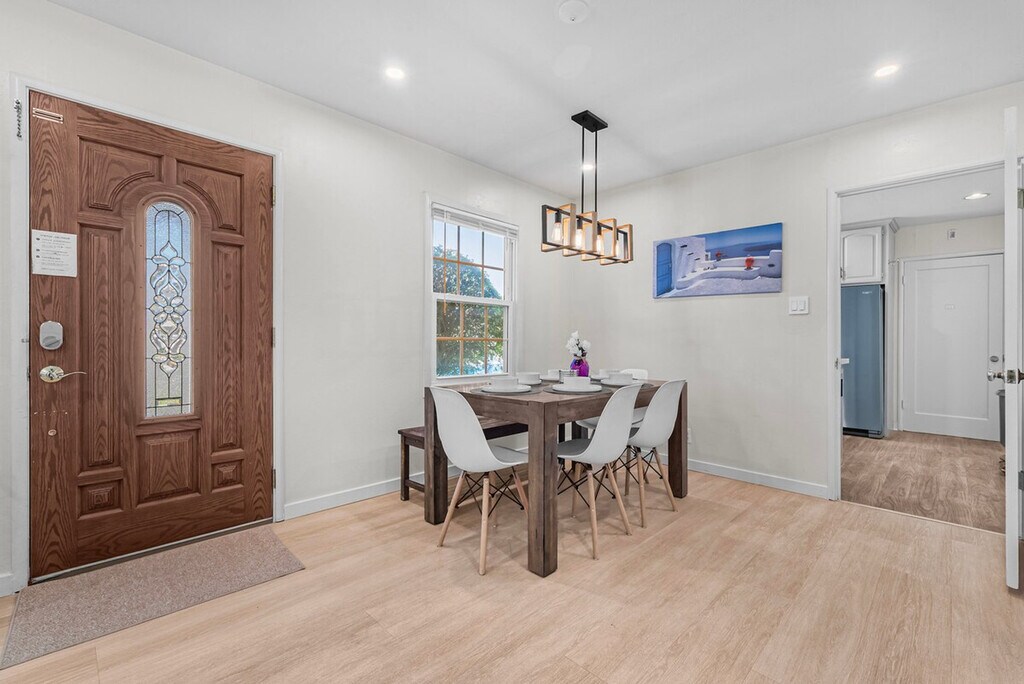 Welcome to this private single-story 3-bedroom, 2-bathroom unit nestled in a safe and convenient single-family neighborhood in the heart of Silicon Valley. Feel at home with a central location just a 15-minute walk to shops and restaurants on El Camino Real, and easy access to major commute routes like San Tomas Exwy, Saratoga Ave, and Homestead Rd. The unit is completely private, though the kitchen shares a wall with another unit. This 3-bedroom unit offers a full kitchen equipped with all necessary cooking utensils, a cozy living room featuring a 49" Samsung TV, a couch, and a dining table. Enjoy high-speed WiFi with unlimited data, central heating and AC, in-unit laundry, and baby essentials including a Pack & Play, high chair, and toys. The master bedroom boasts a queen-sized bed, desk, chair, and an ensuite bathroom with a curbless shower, double sink vanity, and floor heating. The two smaller bedrooms feature a king-sized bed in one and a double-sized bed in the other, each with a desk, chair, and closet. A hallway bathroom includes a bathtub with shower. The property includes curbside parking right in front of the entrance, offering more convenience than driveway parking. There are plenty of parking spaces along the street. Situated in a prime Silicon Valley location, this apartment is just 2.5 miles from the Apple Campus, 10 miles from Google, 3 miles from Intel, and 2 miles from Nvidia. The neighborhood offers plenty of street parking and is within walking distance to El Camino Real, where you'll find shops like Target and Sprouts, and cafes like Peet's Coffee. The unit has a strict no-smoking policy, with a penalty of $500 USD for any traces of smoking inside. Street parking is available for guests. If any issues arise during your stay, they should be addressed immediately as refunds on cleaning or nightly rates will not be authorized after check-out. Each bedroom is equipped with a desk and chair, providing a comfortable space for remote work. High-speed WiFi ensures a seamless work-from-home experience.