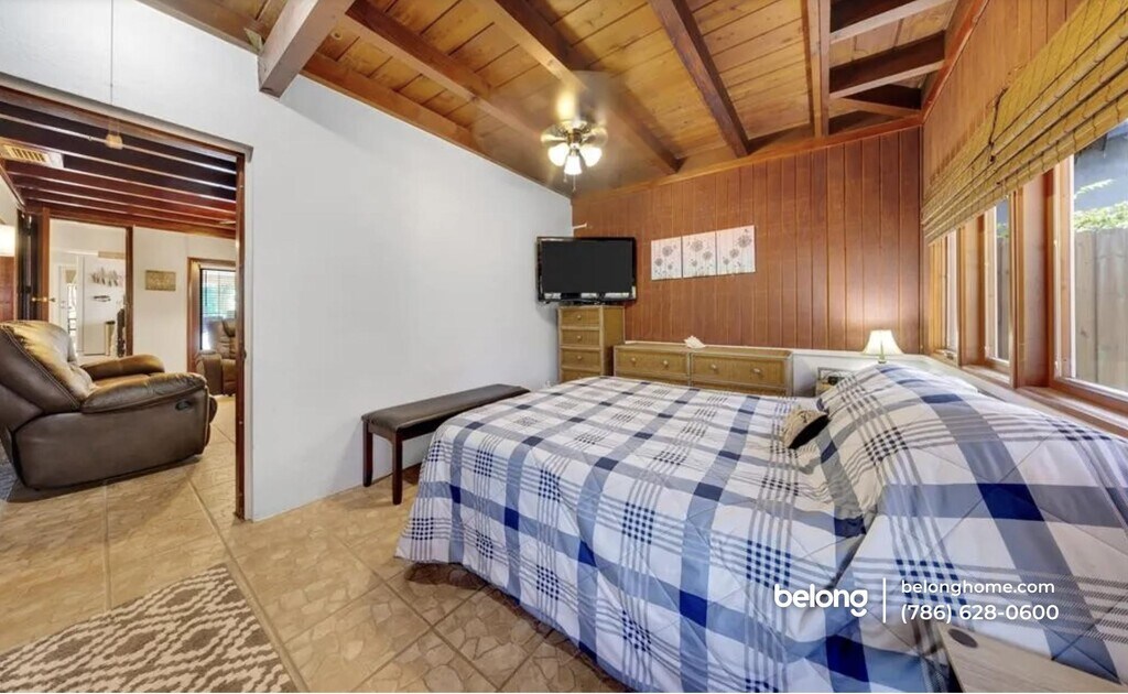This thoughtfully maintained 2-bedroom, 1-bath home stands out with its warm architectural character and a beautifully landscaped yard. Rich wood ceiling details and well-proportioned living spaces give the interior a sense of charm and personality that feels both distinctive and welcoming. The living area showcases a striking stone fireplace and exposed wood ceiling elements that add visual depth and warmth. Its layout supports comfortable everyday use and relaxed evenings at home. Just beyond, the dining space offers a dedicated setting for shared meals, complemented by tile flooring that runs through the main areas for easy care and visual continuity. In the kitchen, clean cabinetry, generous counter space, and a practical galley-style layout create an efficient environment for cooking and organization. Both bedrooms are comfortably sized, each offering natural light and ceiling fans that enhance comfort. The bathroom features a shower-tub combination and a bright, functional vanity area. The outdoor space feels especially special, featuring a grassy lawn, mature greenery, and areas ideal for relaxing or entertaining. Located near Snyder Park, Fort Lauderdale Riverwalk, and the vibrant dining and shopping along Las Olas Boulevard, this home also sits close to Publix, local cafes, and convenient routes to downtown Fort Lauderdale and the airport, making daily errands and outings refreshingly accessible. *Fireplace is for decorative use only and cannot be used without consent from Belong. *Our homes come as-is with all essentials in working order. Want upgrades? Request it through the Belong app, and our trusted pros will take care of the rest!