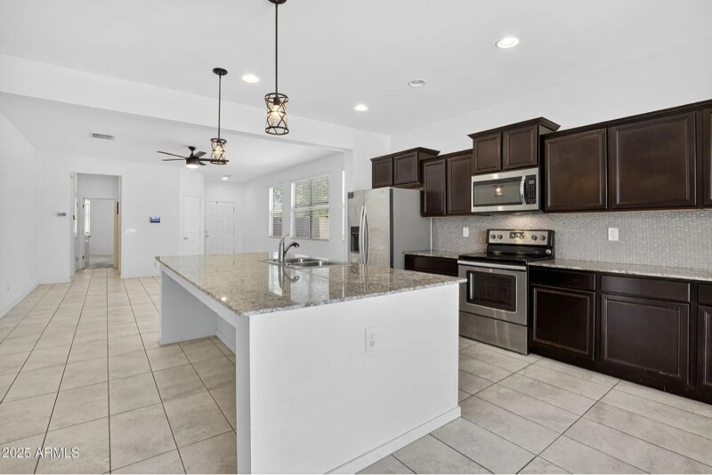 Property Id: 2220414 Welcome to this spacious 4 bedroom, 2 bathrooms in Watson Estates. The open floor plan is ideal for family time and entertaining. The beautiful kitchen features granite counter tops, an oversized island with breakfast bar, built-in microwave, stainless steel appliances, walk-in pantry and lots of cabinet space. The master bedroom features large walk-in closet, double sinks and walk-in shower. Two of the 3 bedrooms have walk-in closets. Second bathroom has double sink with separate doors to allow for multi access, no more morning fighting over whose turn it is in the bathroom. Large laundry room with newer washer and dryer included. Ideally located minutes from interstate 10, shopping, restaurants and great schools. Less than 10 minutes away are beautiful hiking trails. Only 20 minutes from downtown Glendale, home of State Farm Stadium, concert venues and tons of entertainment.
