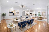 Discover this stunning one-story home nestled in the sought-after Cinco Ranch Community. Located near La Centerra shops, restaurants, a library, waterpark, tennis courts, nature trails, and TOP-RATED Katy ISD Schools, it offers convenient access to TX-99 for commuting ease. Upon entry, you're welcomed by a formal dining room on one side and an office on the other. The open layout with high ceilings flows into the family living room, which opens to a beautiful extended patio and lush backyard greenery. The spacious primary bedroom with large walk-in closet. No carpet,wood/laminate flooring throughout. The updated kitchen boasts a commercial-grade 4-burner gas grill. Outside, the private backyard oasis with its extended patio is ideal for entertaining guests. Additionally, the office room with French doors serves perfectly as a home office or study space for children.