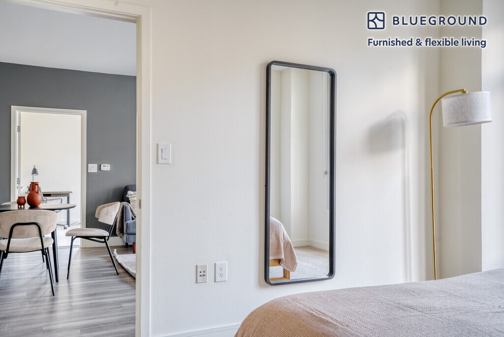Staged photos of matching layout and similar décor Imagery shows same floorplan and building, and similar décor as we finish photographing this new unit. Be the first to rent! Discover the best of Mountain View, with this two bedroom apartment in North Los Altos. It’ll be easy to simply show up and start living in this furnished apartment with its fully equipped kitchen, living room, and our dedicated, on-the-ground support. (ID #SFO9472A) The advertised rate of $5,510/month is the lowest available price, based on a 12 month(s) stay with a move-in date of October 18, 2025. Rates vary depending on the duration of stay, season, and other parameters. For exact pricing and additional pricing components, please visit our website and enter your desired move-in and move-out dates. The rate is applicable when billed upfront; it can be higher if billed in multiple payments. Brokers are welcome to reach out. Were you looking for an unfurnished lease? Try Blueground instead and upgrade from unfurnished to furnished living: - Furnished at rates comparable to unfurnished - No setup or furniture costs - save thousands - Move-in ready - save time, just bring your suitcase Designed with you in mind Thoughtfully designed with bespoke finishes, modern furnishings, and a fully equipped kitchen, you’ll enjoy that “I’m home” feeling with this Blueground apartment. Whether you’re lounging in your cozy living room streaming the latest and greatest entertainment on the smart TV or premium wireless speaker, or getting some well-earned rest on the superior quality mattress with luxury linens, you’ll fall in love with everything this North Los Altos apartment has to offer. This apartment also offers in-apartment laundry. Amenities Building amenities unique to this two bedroom apartment include an on-site: - Dryer - Washing machine - Parking Arrival and ongoing support The entire apartment is yours to enjoy! Throughout your stay, you’ll have access to our Client Experience team through the Blueground App. You can schedule additional cleanings, submit maintenance requests, and view our neighborhood recommendations with just a few taps. We’ll share all details upon confirmation of your stay. Other things to note Photos show same floorplan and building, and similar decor as we finish photographing this new apartment. This Blueground apartment has flexible lease options, allowing you to book it for one month, a year, or more. Parking is offered based on availability and is subject to a fee. Please keep in mind that this is a walk up building. We take great pride in ensuring every photo displayed is shot in our own units with our actual furnishings. That said, we regularly refresh our decor and furniture arrangement, which may differ from what’s pictured.